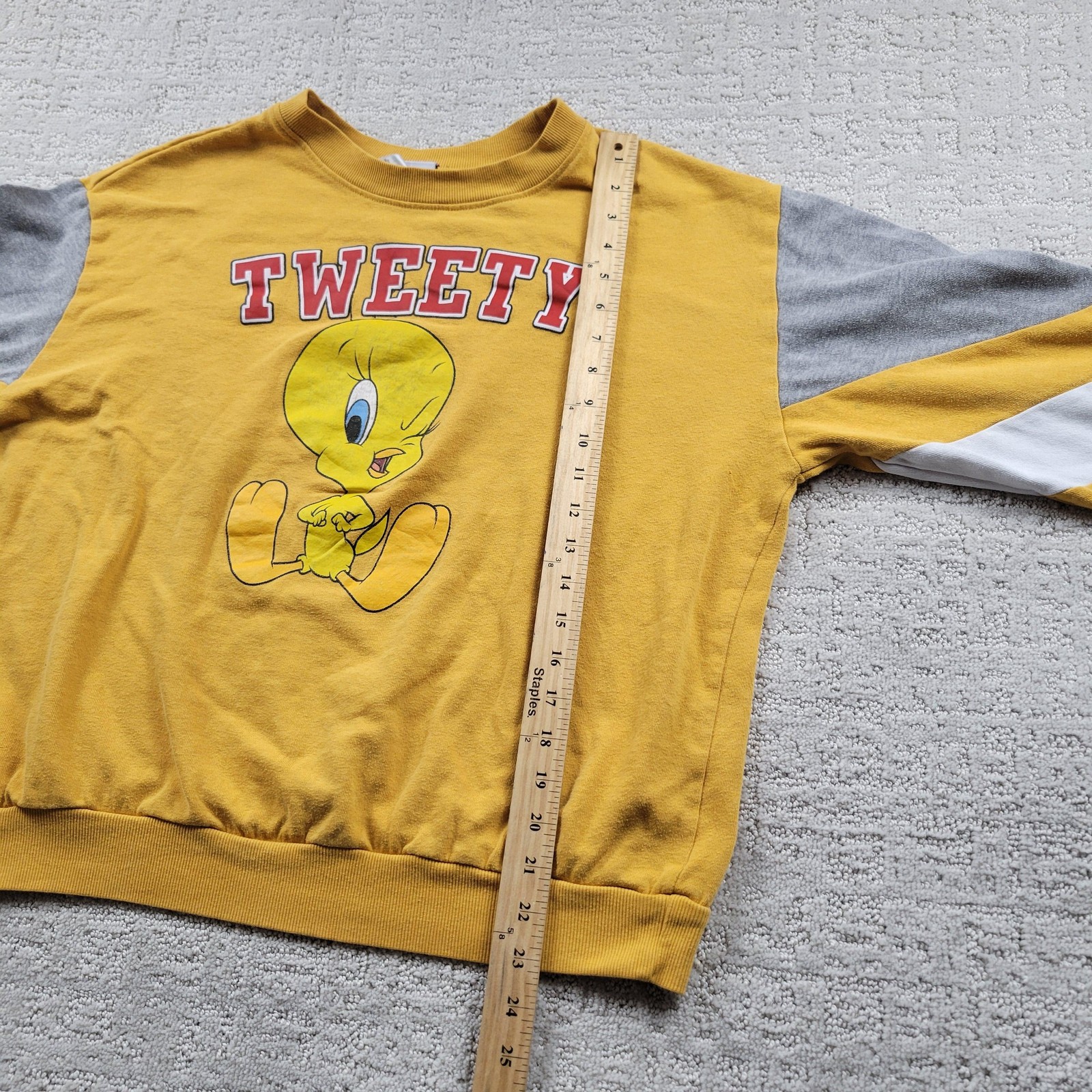 Looney Tunes Tweety Sweatshirt Juniors Large Yellow Colorblock Graphic Pullover