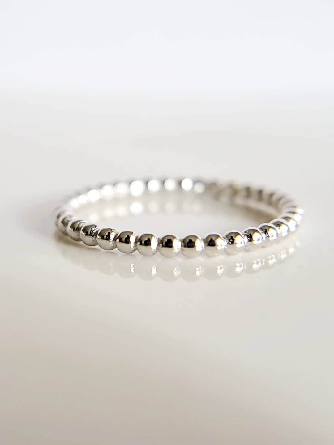 как выглядит Sterling Silver Dainty Beaded Band Ring фото