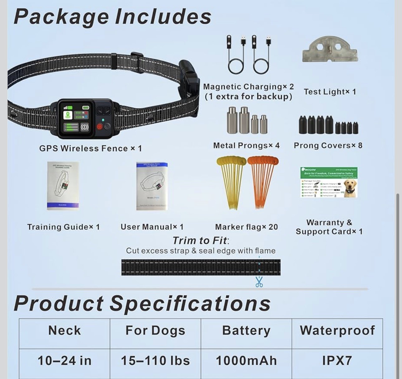 Included Components: GPS Wireless Fence*1 、Silicone Sleeves*8、Test Light*1、Metal Prong