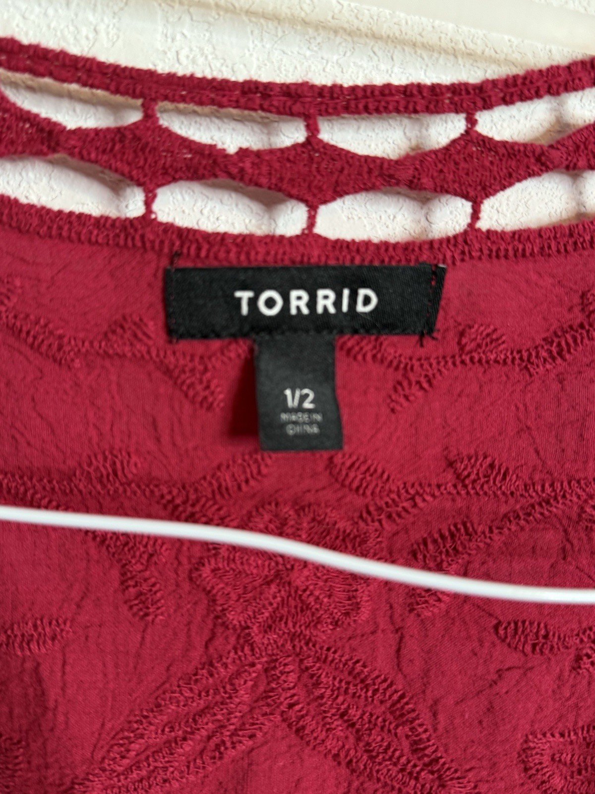 TORRID Kimono Cardigan Crochet Lace Inset Floral Boho Women's Red Size 1/2