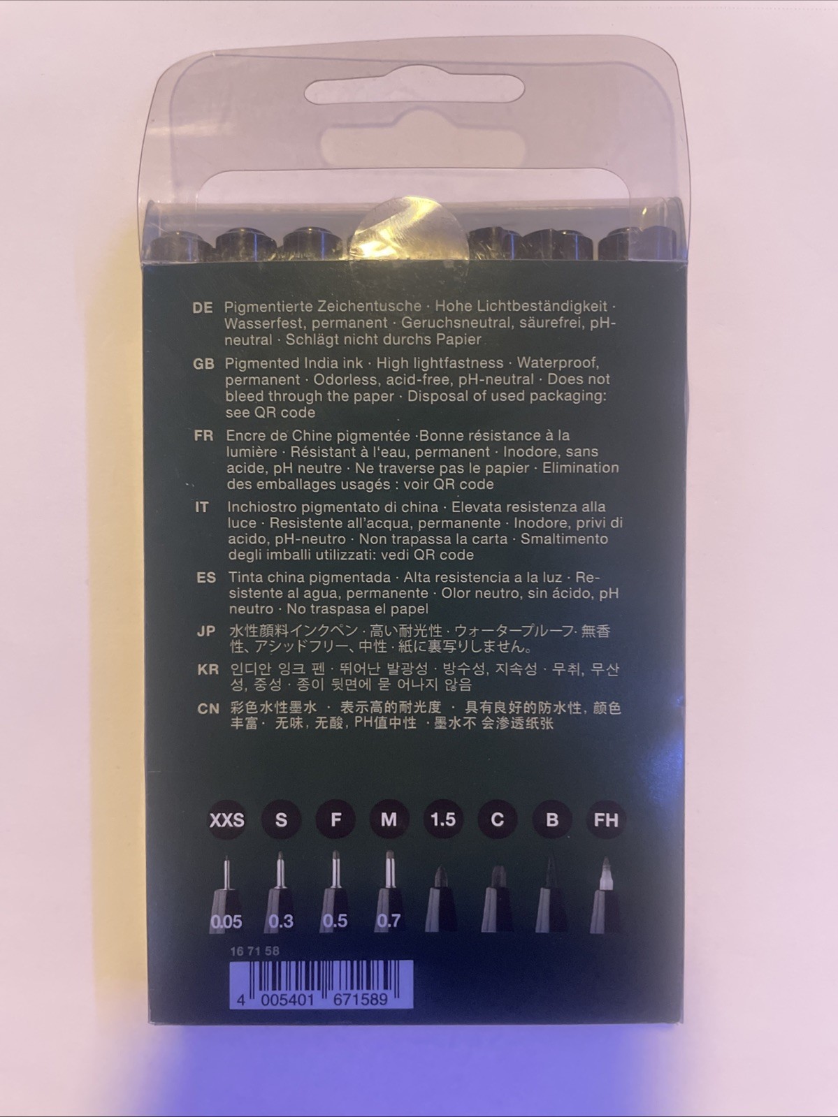 как выглядит Faber Castell Pitt Artist Pens, Black India Ink, 8 Piece Set, Assorted Sizes фото