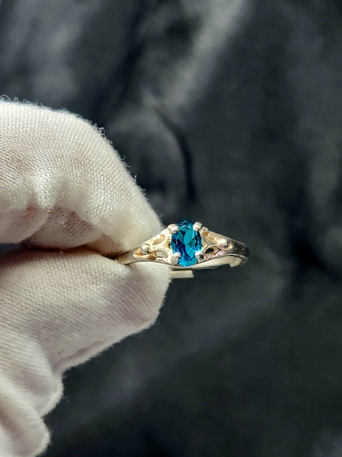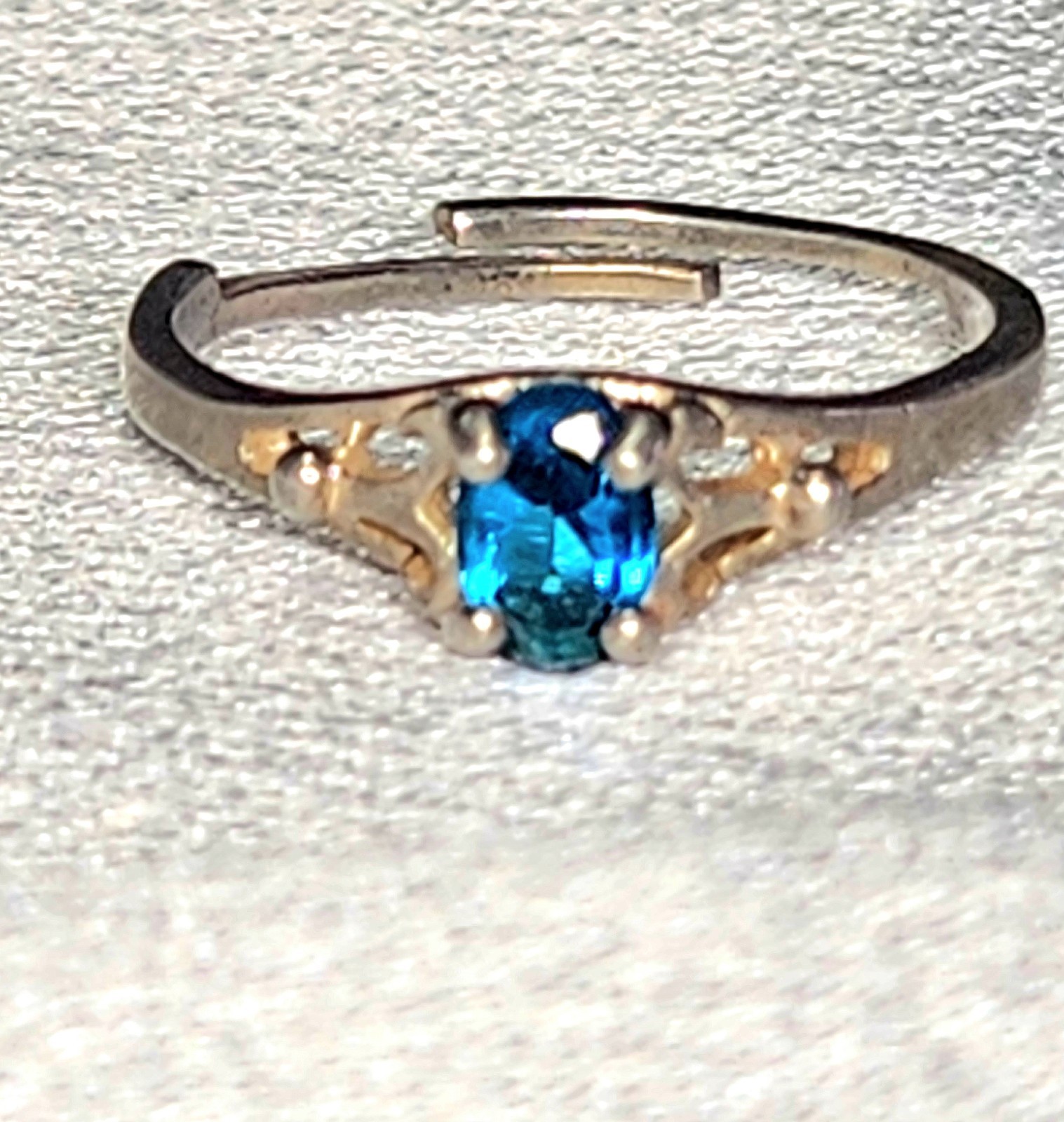 Vintage Sterling Silver London Blue Topaz Adjustable Ring Collectible Unique