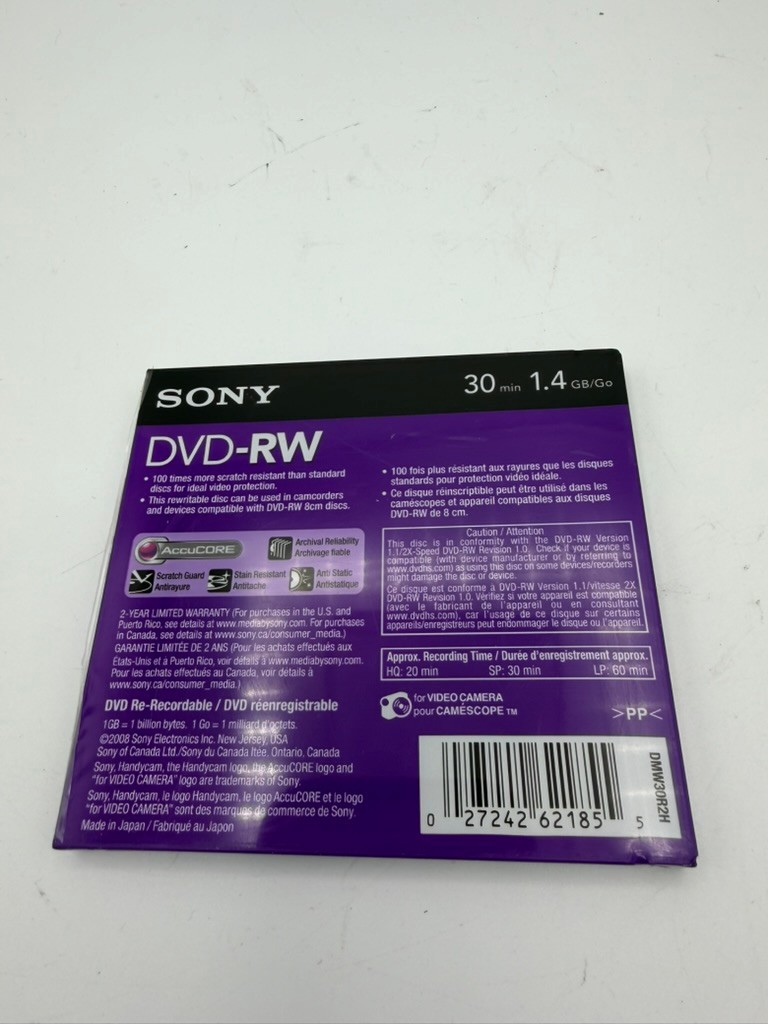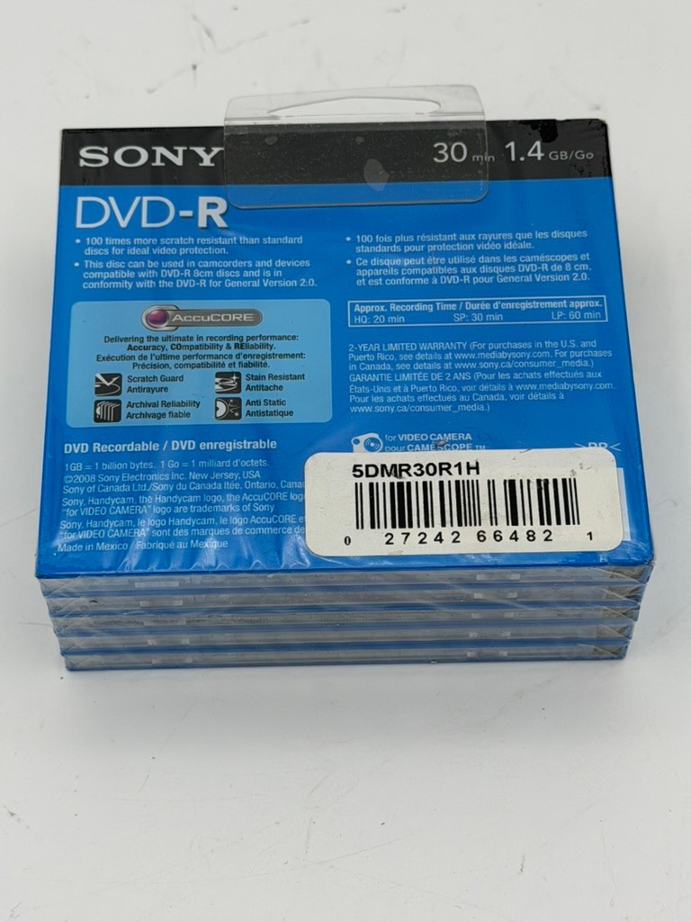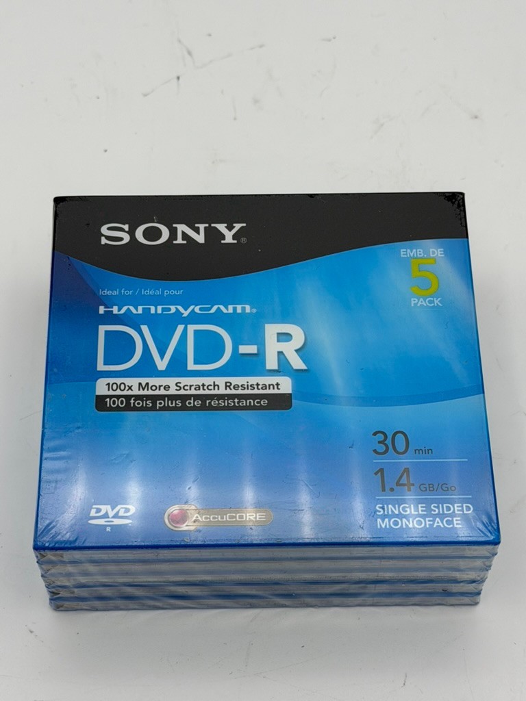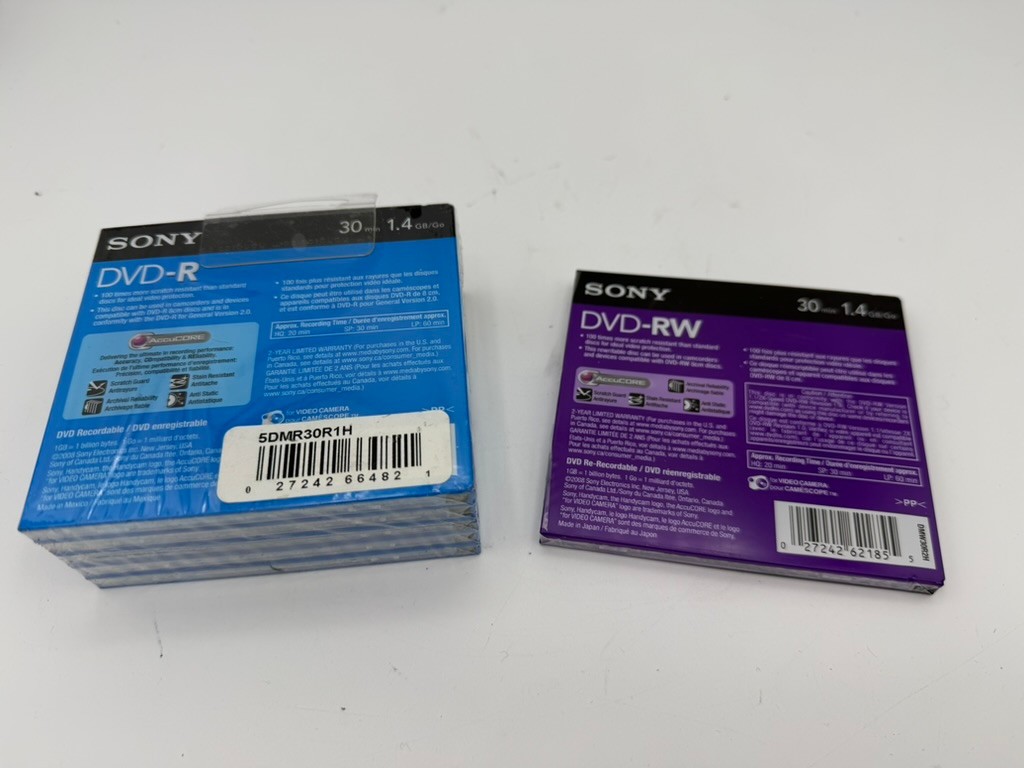 NEW 5-Pk Sony Handycam Camcorder DVD-R 1.4GB 30 Min Single Sided BONUS DVD-RW