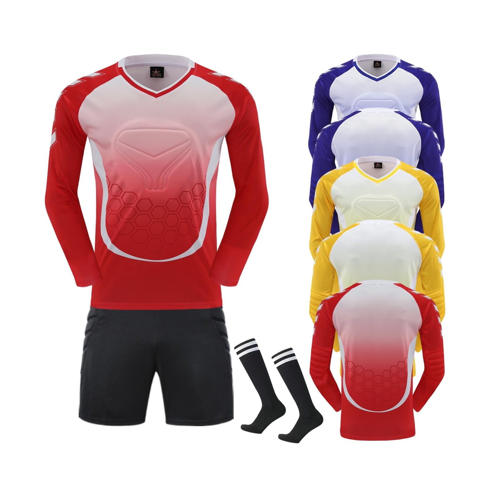 GEF1573ANTU Kids Soccer Goalie Jersey and Shorts,Youth/Boys Long Sleeve Shirt...