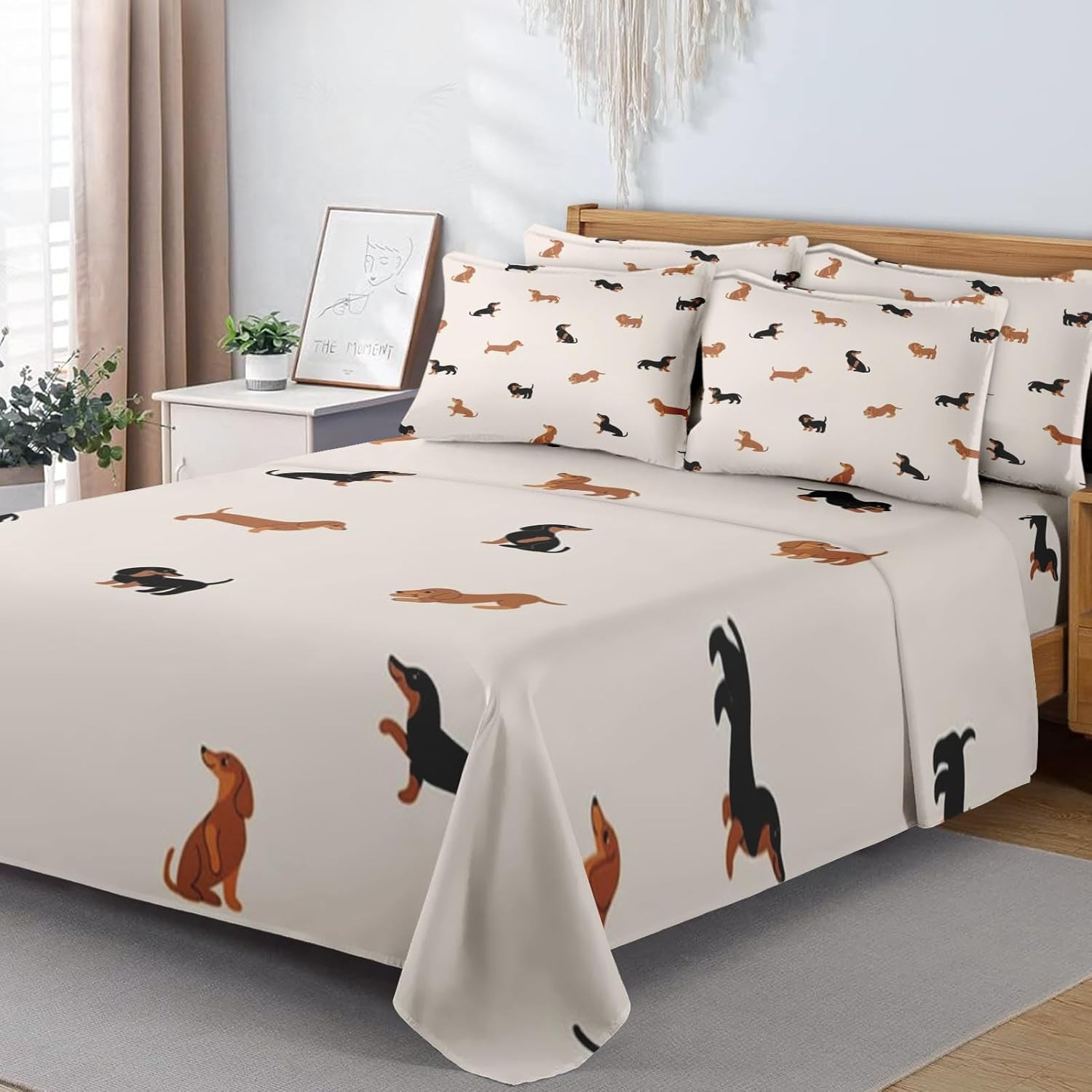 как выглядит 7Pcs Comforter Set Queen Size, Cute Happy Dachshund Dog Puppy, Bedding Decor Car фото