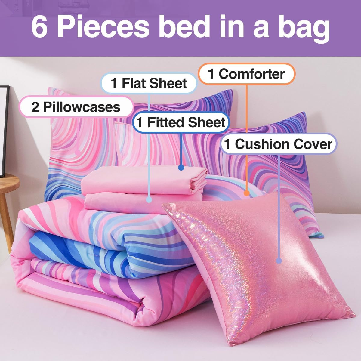 Super Soft 6 Pieces Gradient Star Ring Comforter Set, Colorful Glitter Rainbow W
