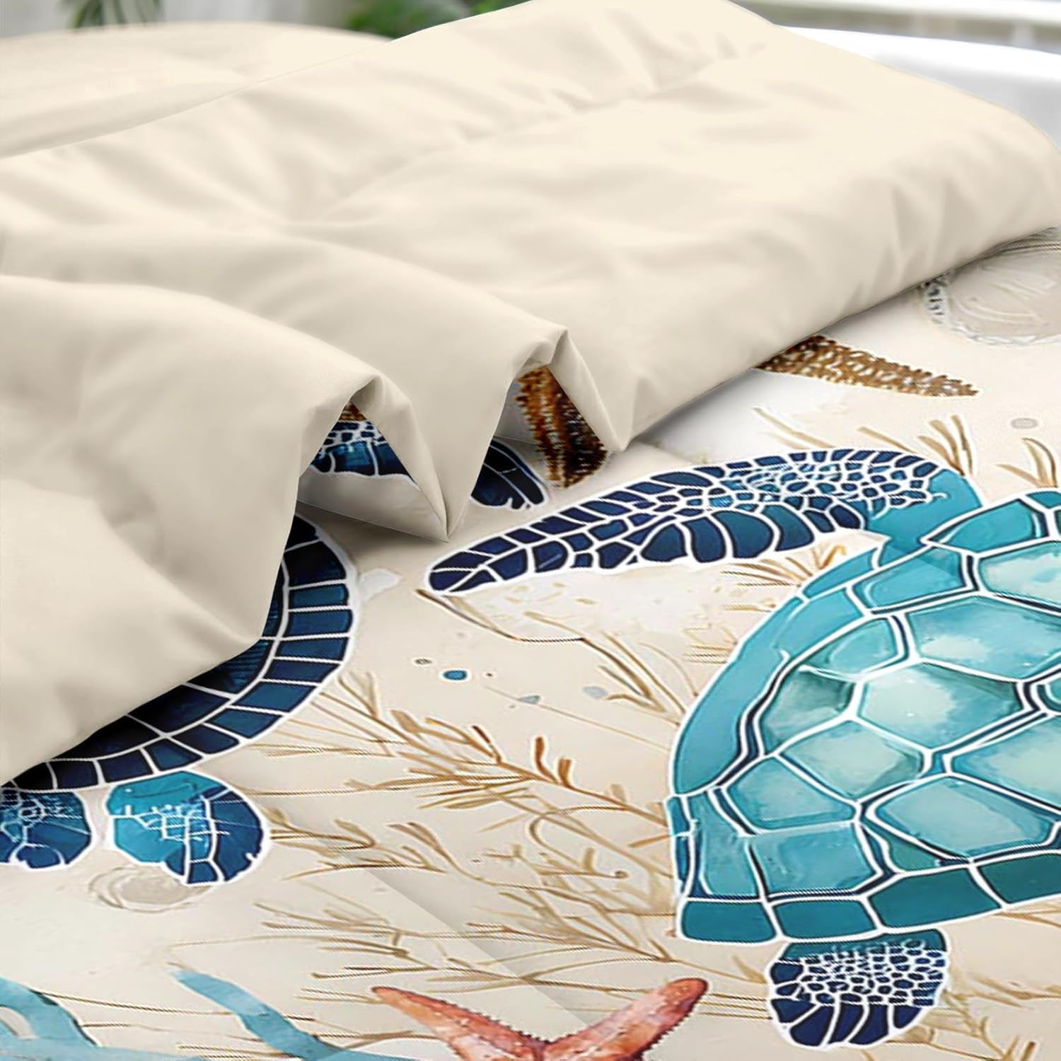 как выглядит Ocean Coral Sea Turtle 7-Pc Comforter Set for Kids Adults, Full Size фото