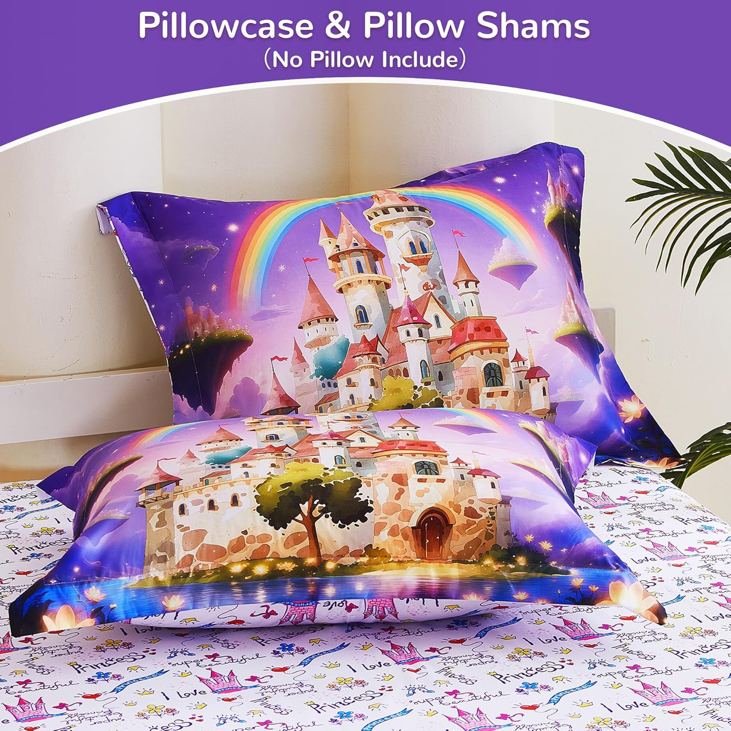 Enchanted Rainbow Castle Kids Bedding Set Full Size - OEKO-TEX 100 Certified Bed