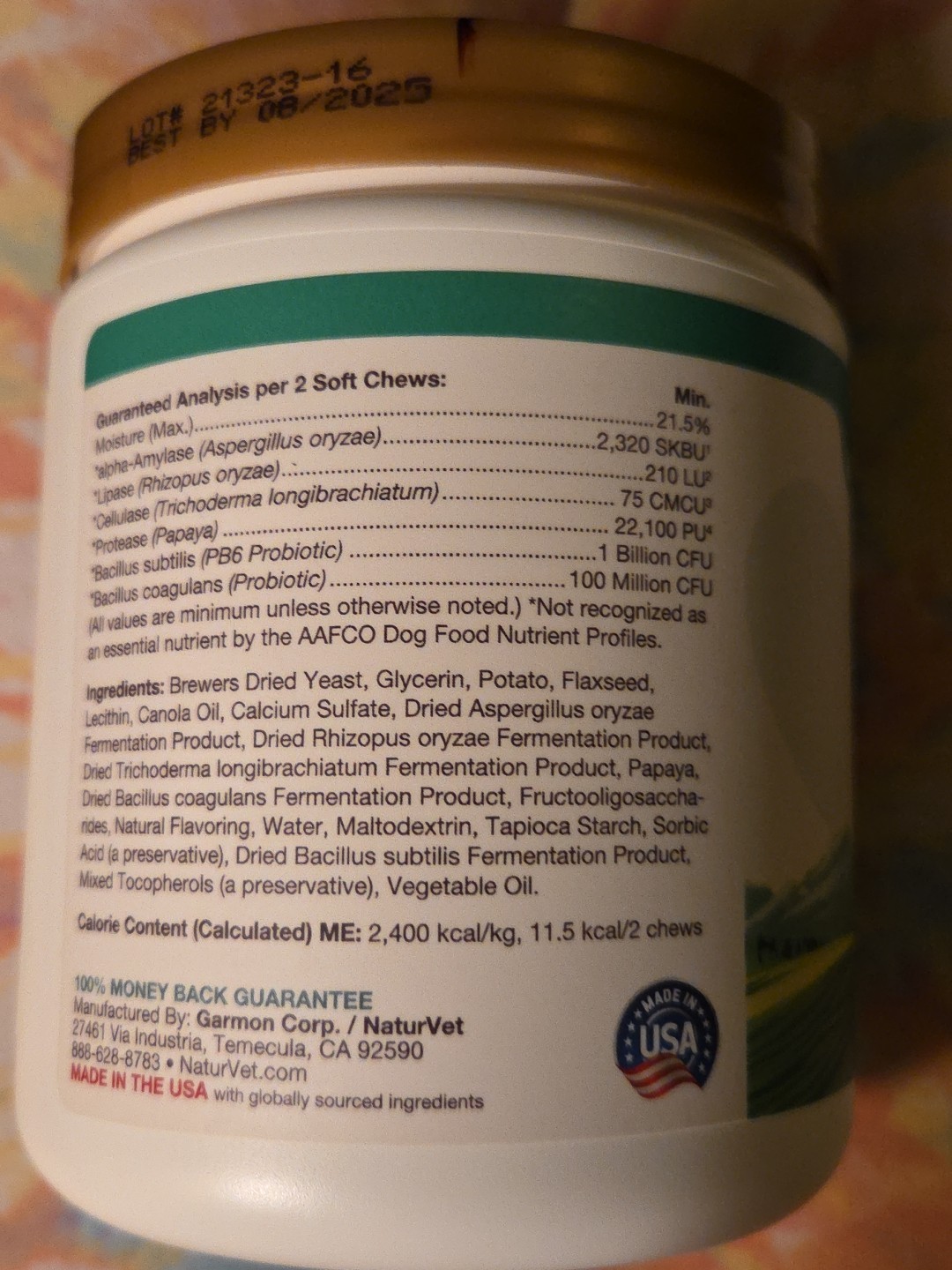 NaturVet Adv. Probiotics Enzymes Dogs 120 Chews BB 9/28 Sale Helps Dog ResQ
