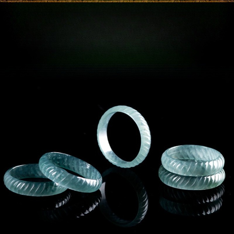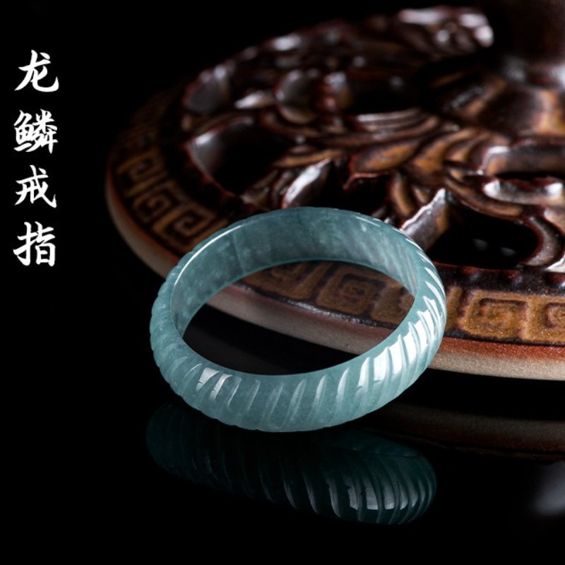 Certified natural A-grade jadeite Blue water Dragon scale pattern ring