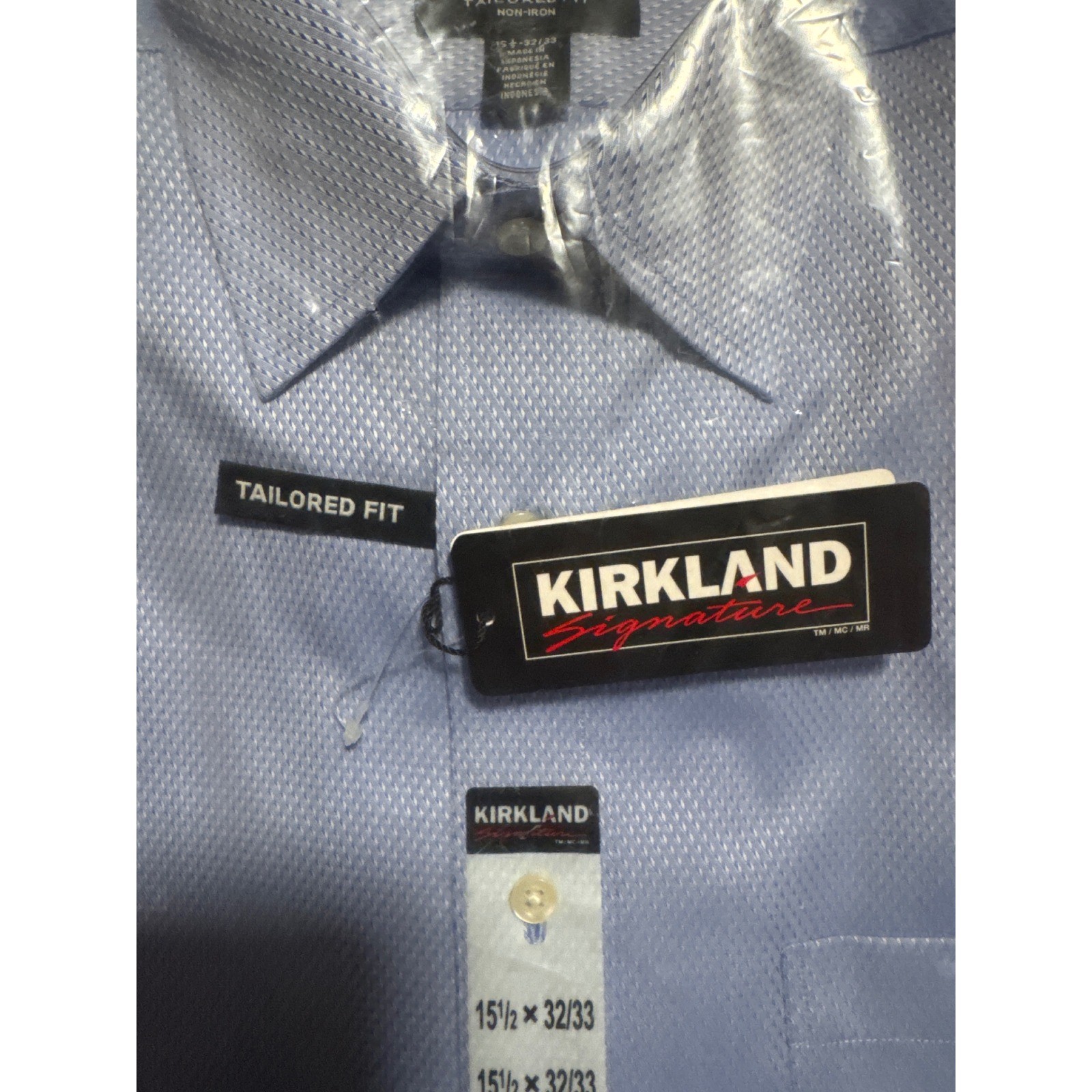 Kirkland Signature Men's Tailored Non Iron Dress Shirt Blue Diagonal 15.5 32 33
