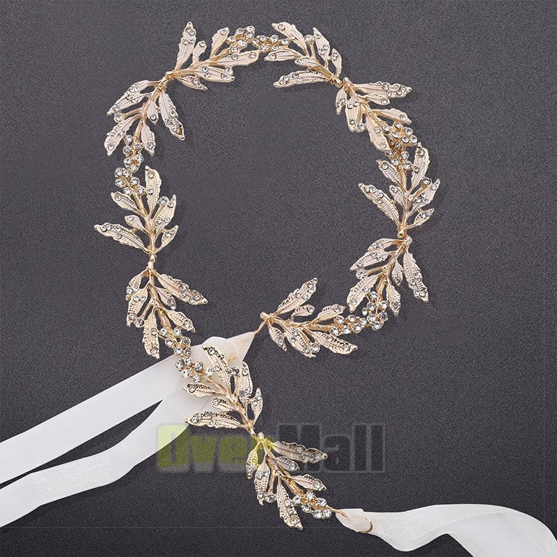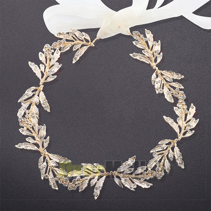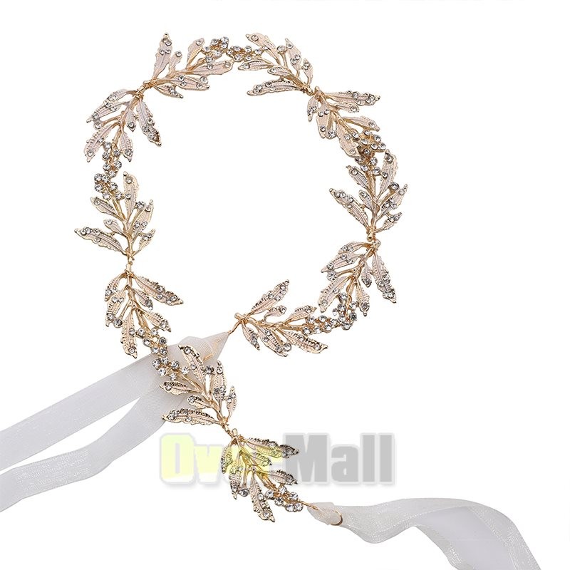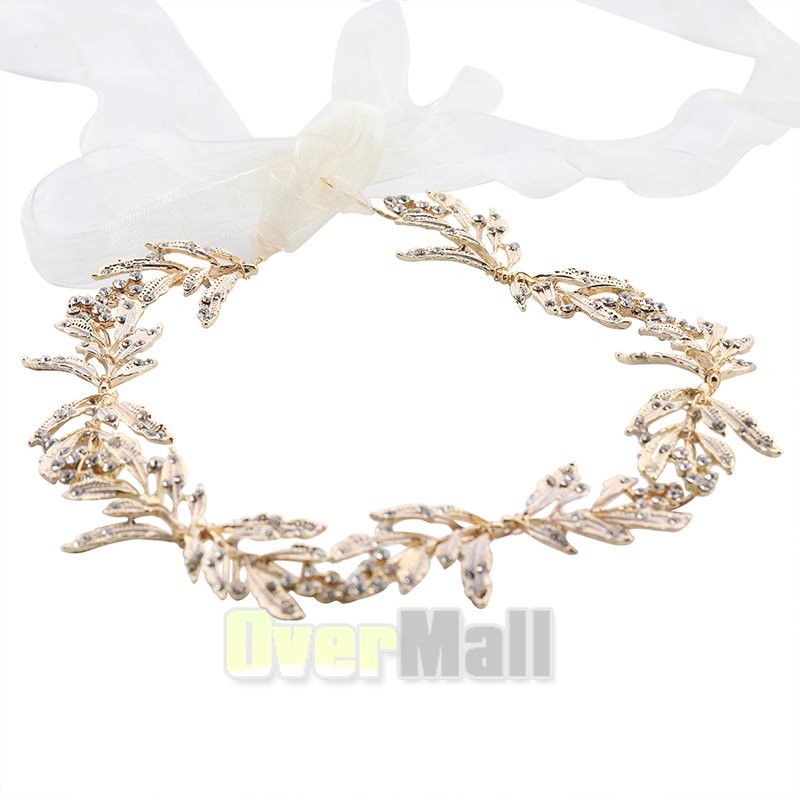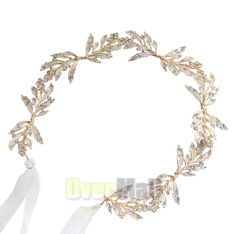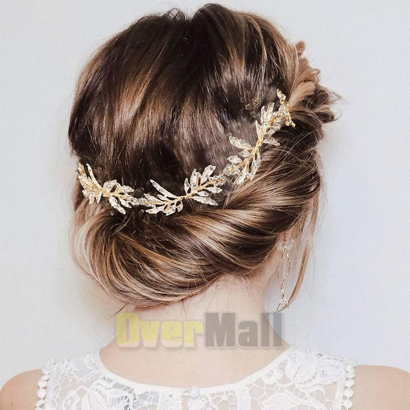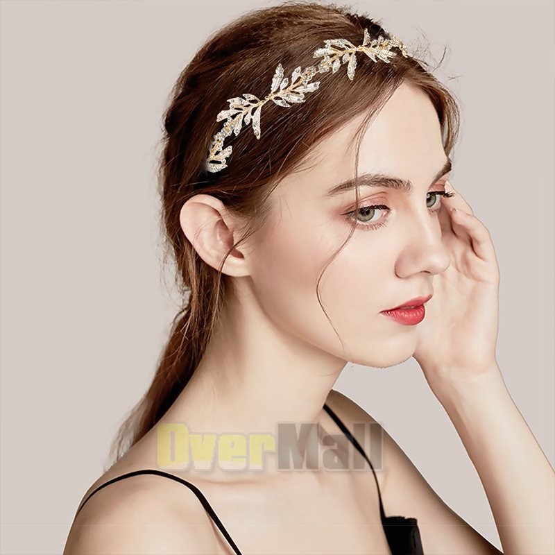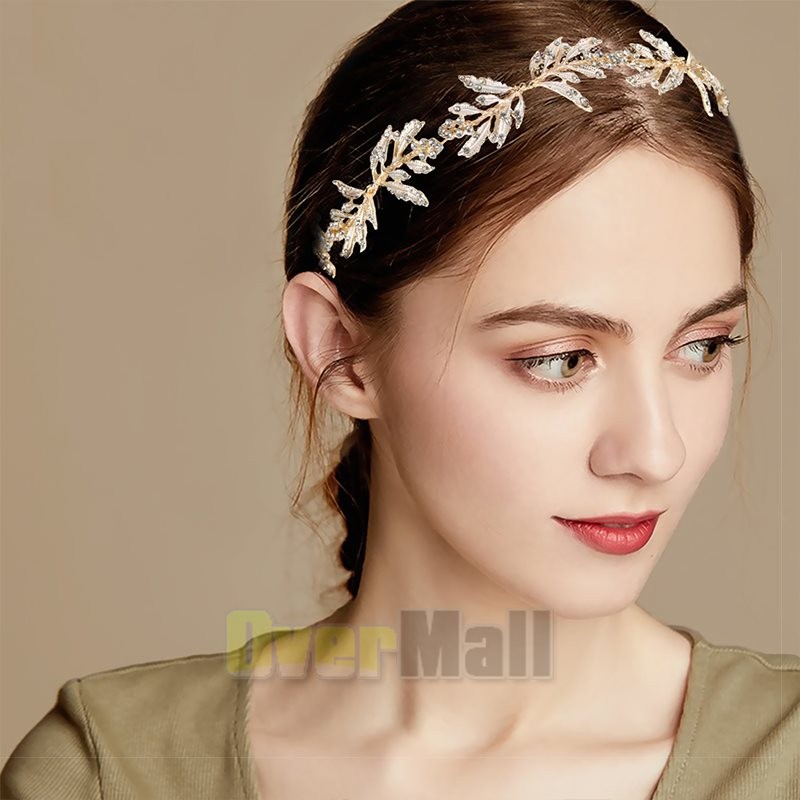 Leaf Wedding Headpieces for Bride Flower Girl Gold Bridal Headband Rhinestones
