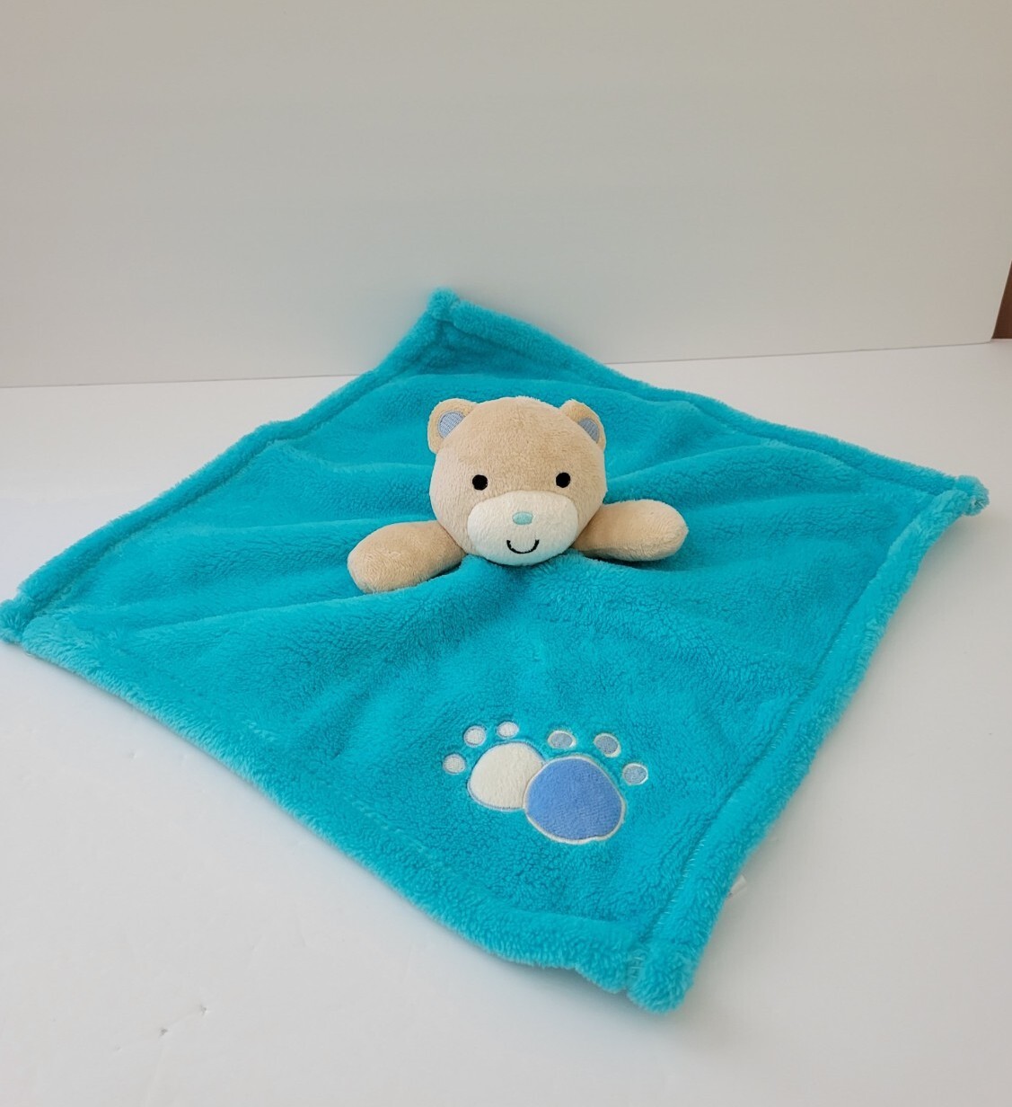 Baby Gear Aqua Blue Teddy Bear Paw Print Plush Lovey Security Blanket Toy