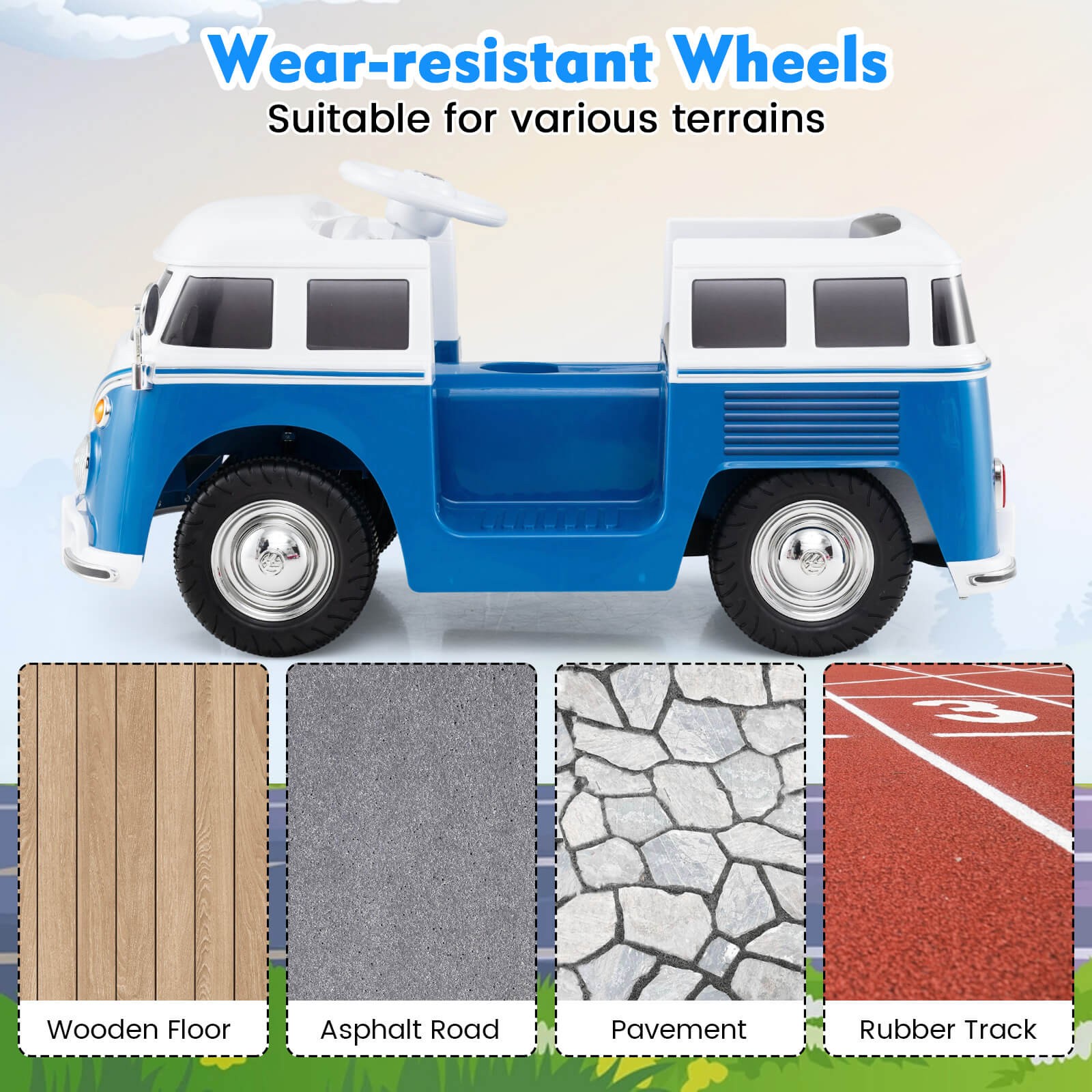 Licensed Volkswagen Ride-on Bus w/ Cup Holder, LED Headlights, Music Horn