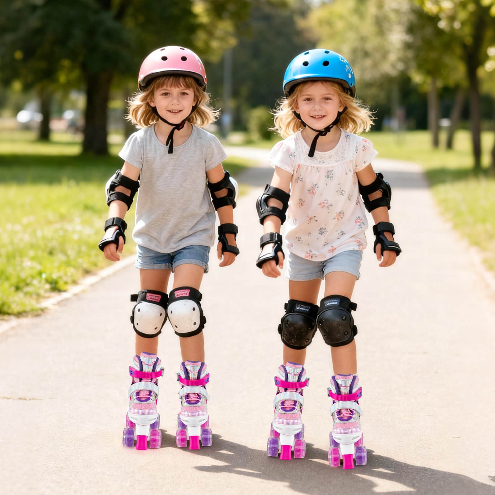 Kids Roller Skates 4 Sizes Adjustable Quad Skates w/Light-up Wheels for Ages 5-8