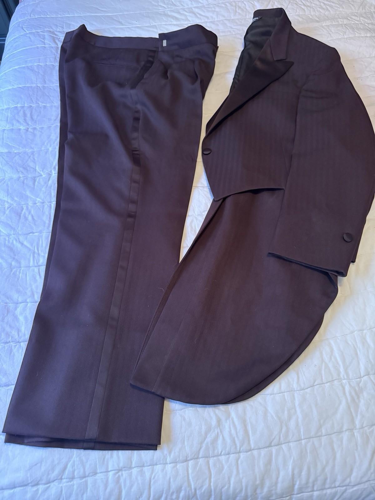 как выглядит Robert Wagner Raffinati Tuxedo Tailcoat Pants Suit Formal - Maroon Purple 46R фото