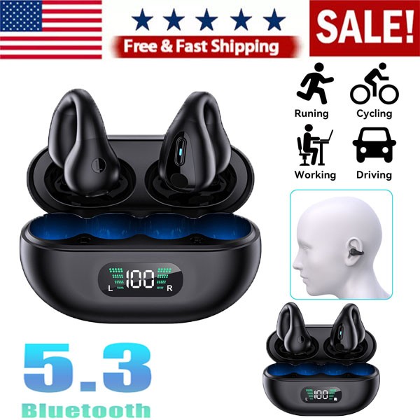 Bluetooth 5.3 Wireless Earbuds Ear Clip Bone Conduction Headphones Sport Headset