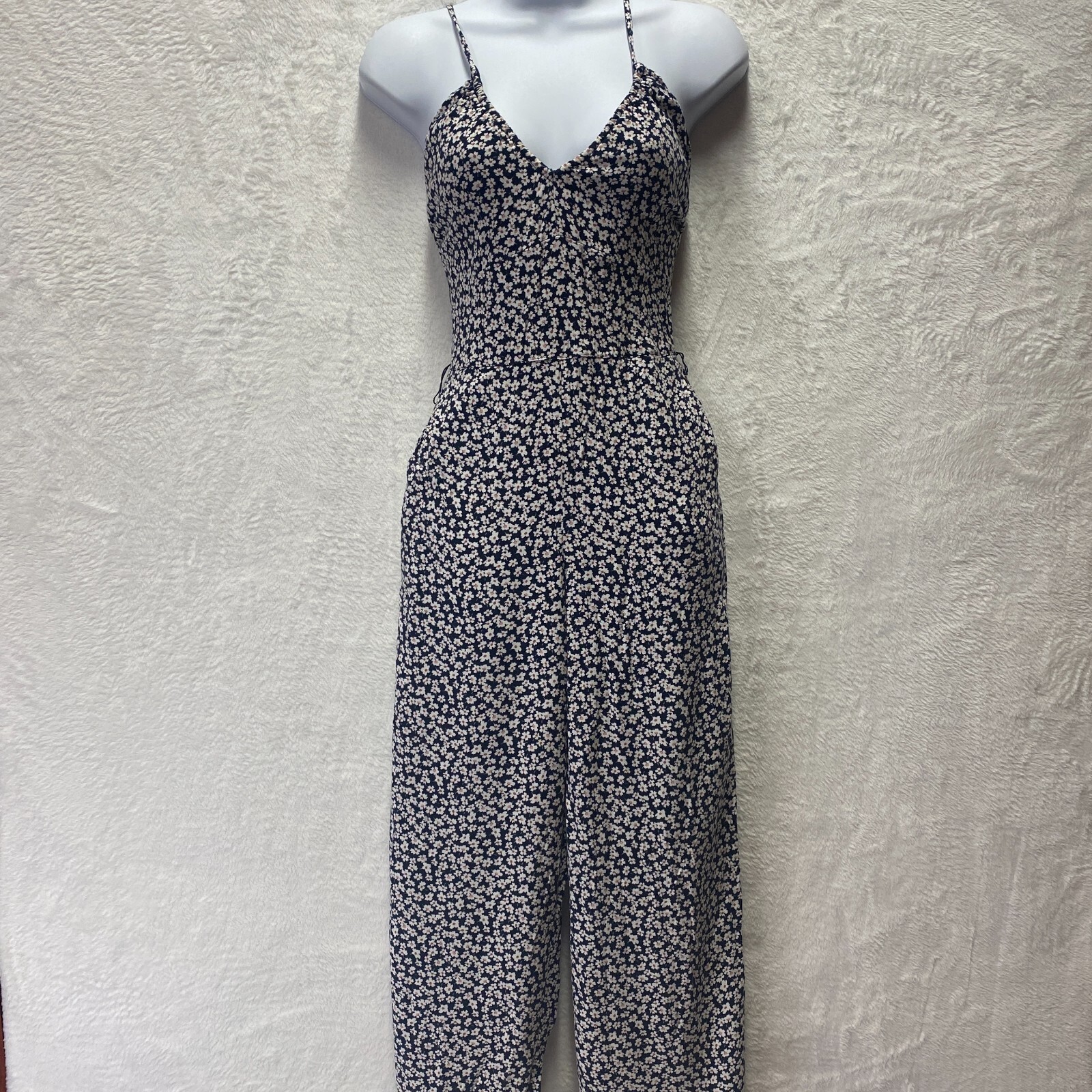 Abercrombie Fitch Jumpsuit Women XS Blue Daisy Floral Smocked Sleeveless Vaca