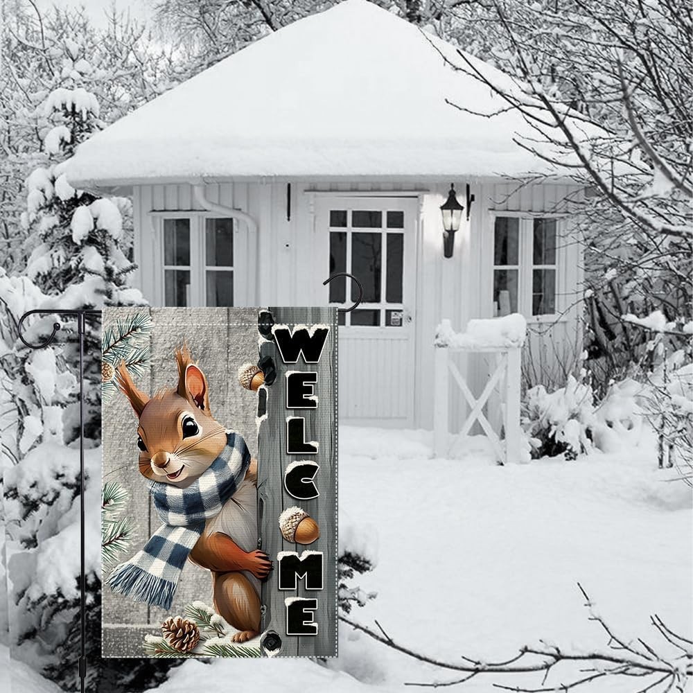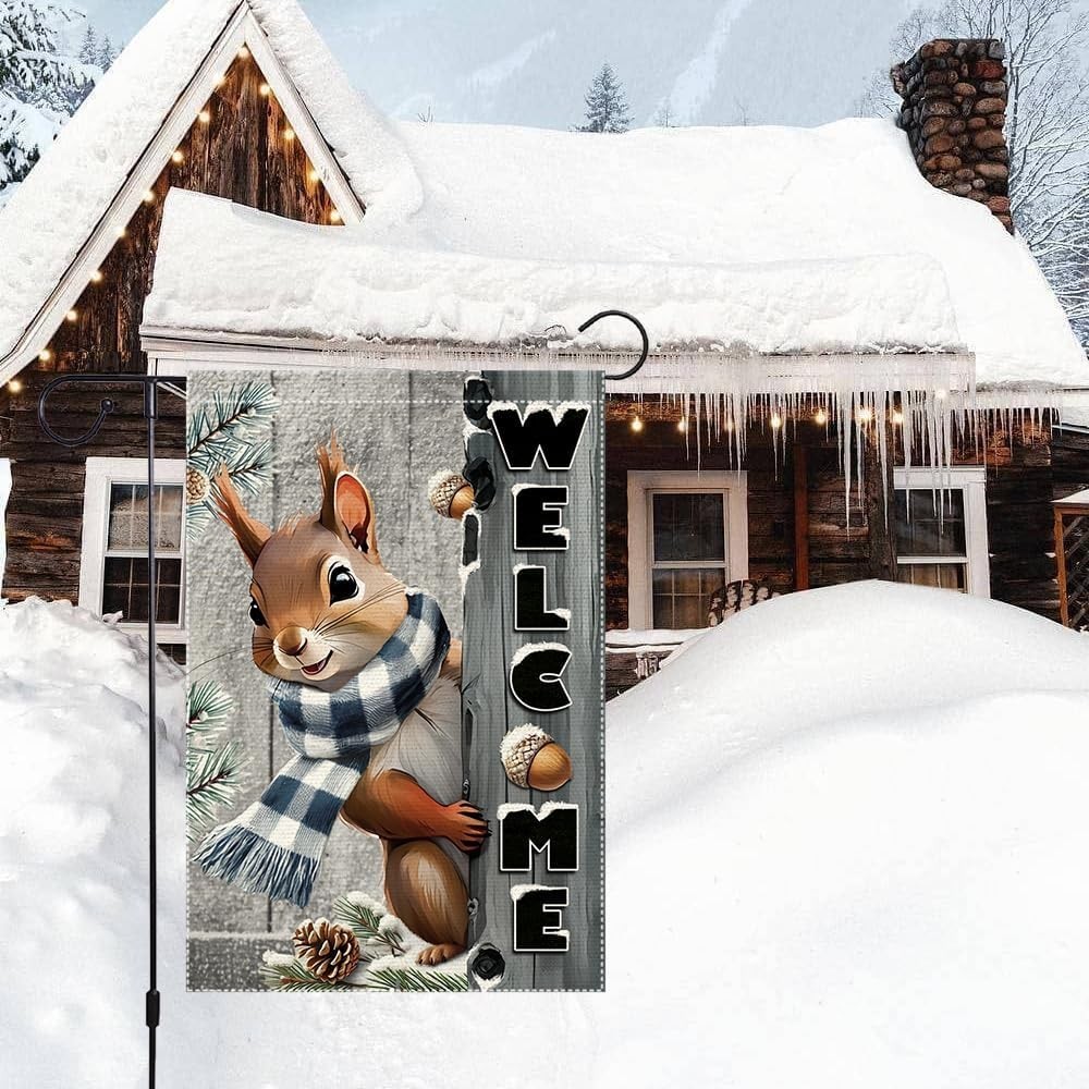 Welcome Garden Flag 12x18inch The Nut Squirrel Winter Garden Flags Yard Porch...