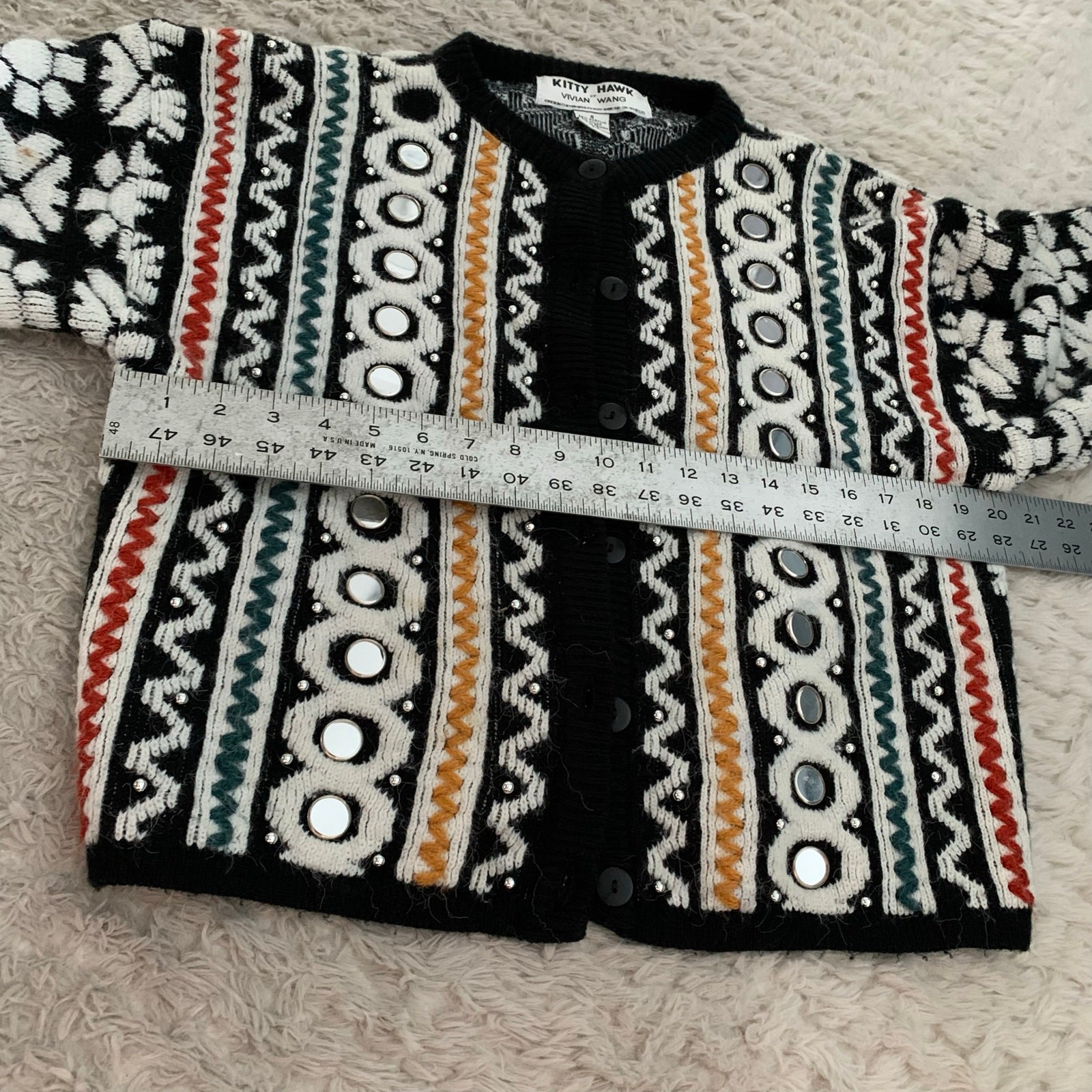 как выглядит Vintage Kitty Hawk by Vivian Wang Beaded Geometric Cardigan Multicolored 90s фото