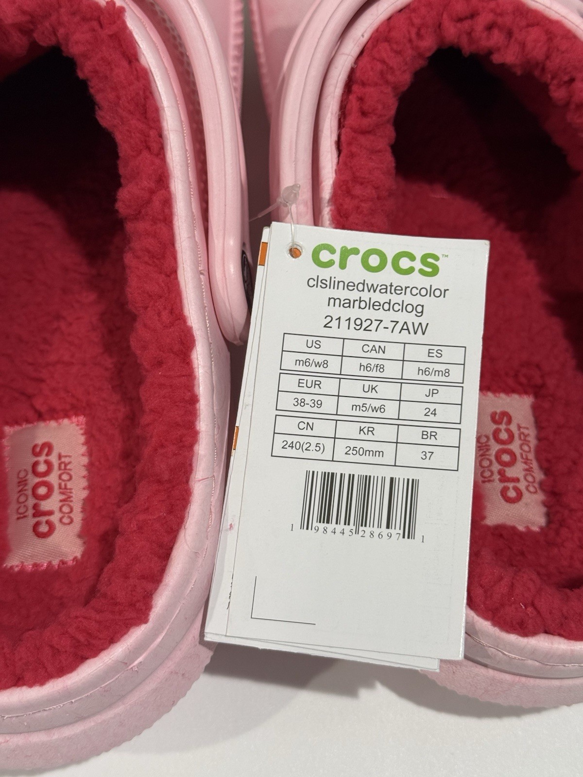 как выглядит Crocs Classic Lined Watercolor Marbled Clog Powder Pink Swirl Size M6/W8 - NEW фото
