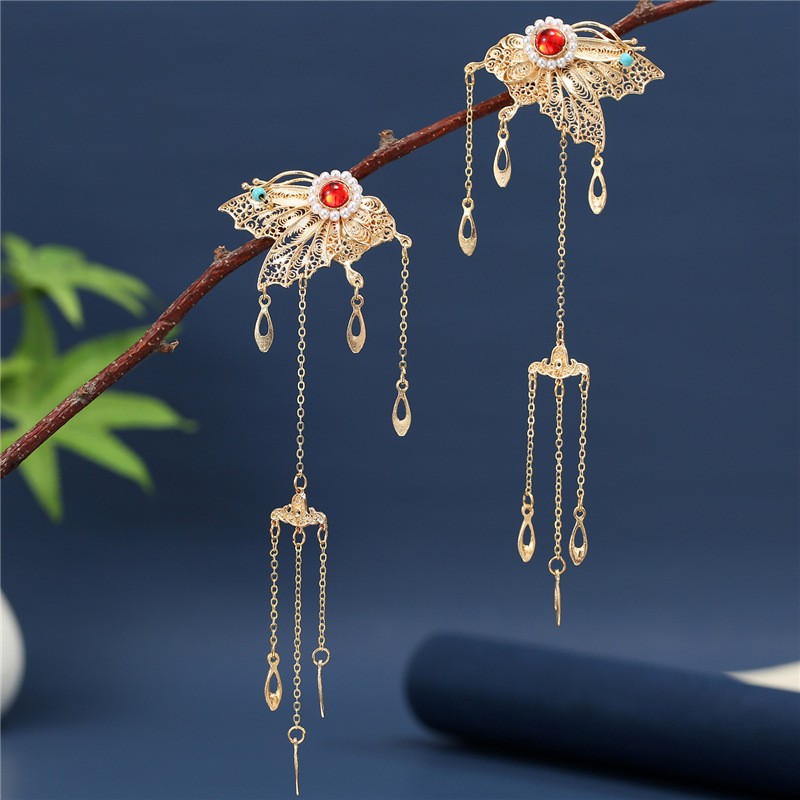 Gold Plated Hanfu Hair Clip Chinese Style Vintage Hair Accessory Headpiece