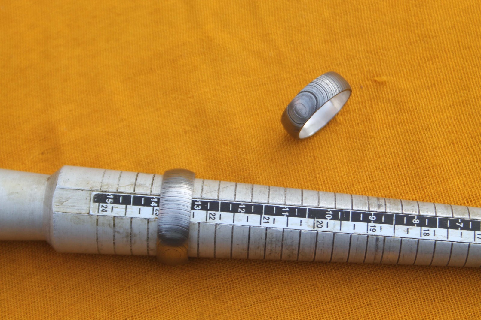 как выглядит pair of damascus steel finger ring silver liner valentine gift 14/9.5 US size фото