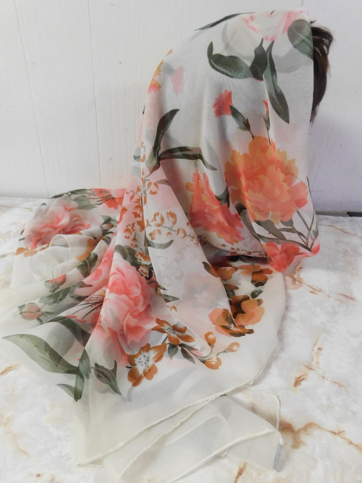 как выглядит Vintage Sheer Floral Scarf 45 " Square фото