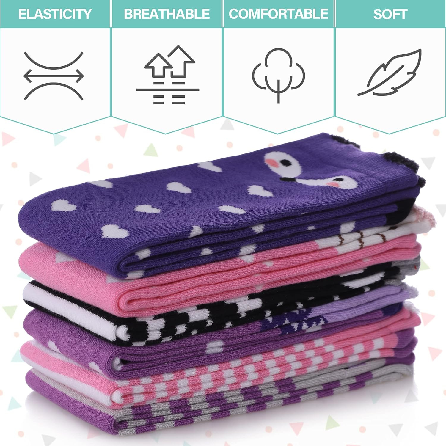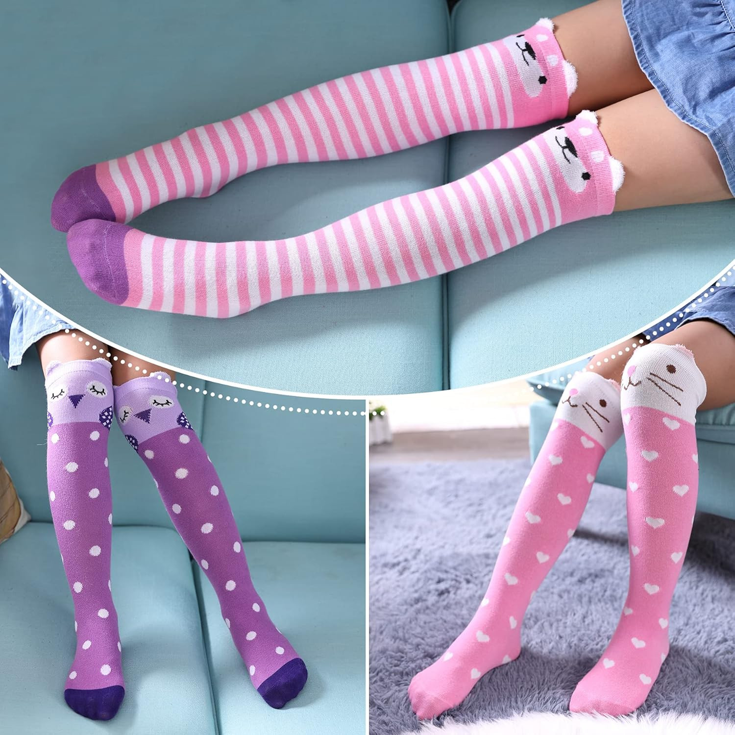 3-12 Years Girls Knee High Socks Kids One Size, 6 Pairs Animal C