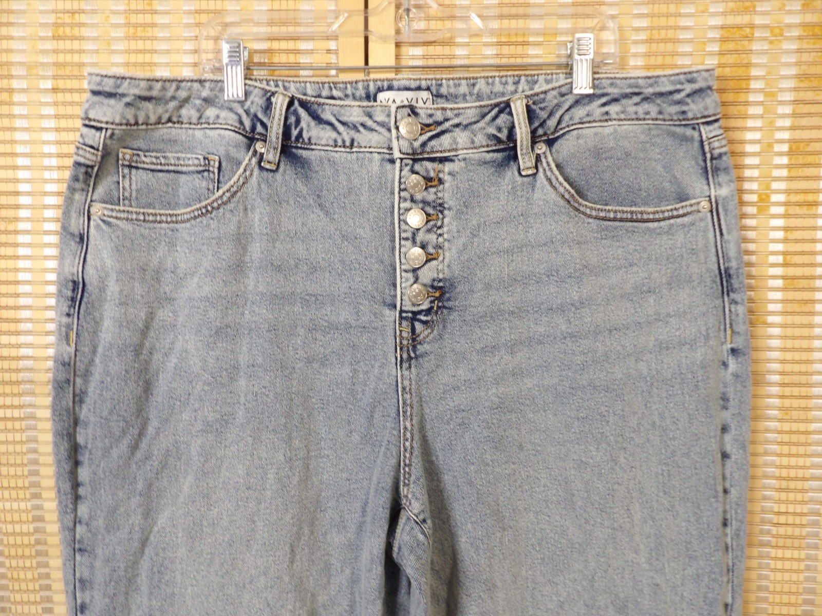 как выглядит Womens Ava Viv Size 18 High-Rise Straight Hip Thigh Cuffed Blue Denim Jeans фото