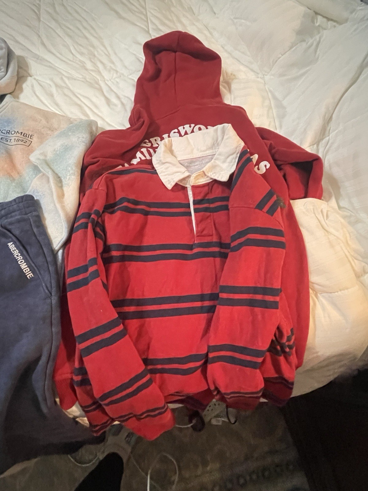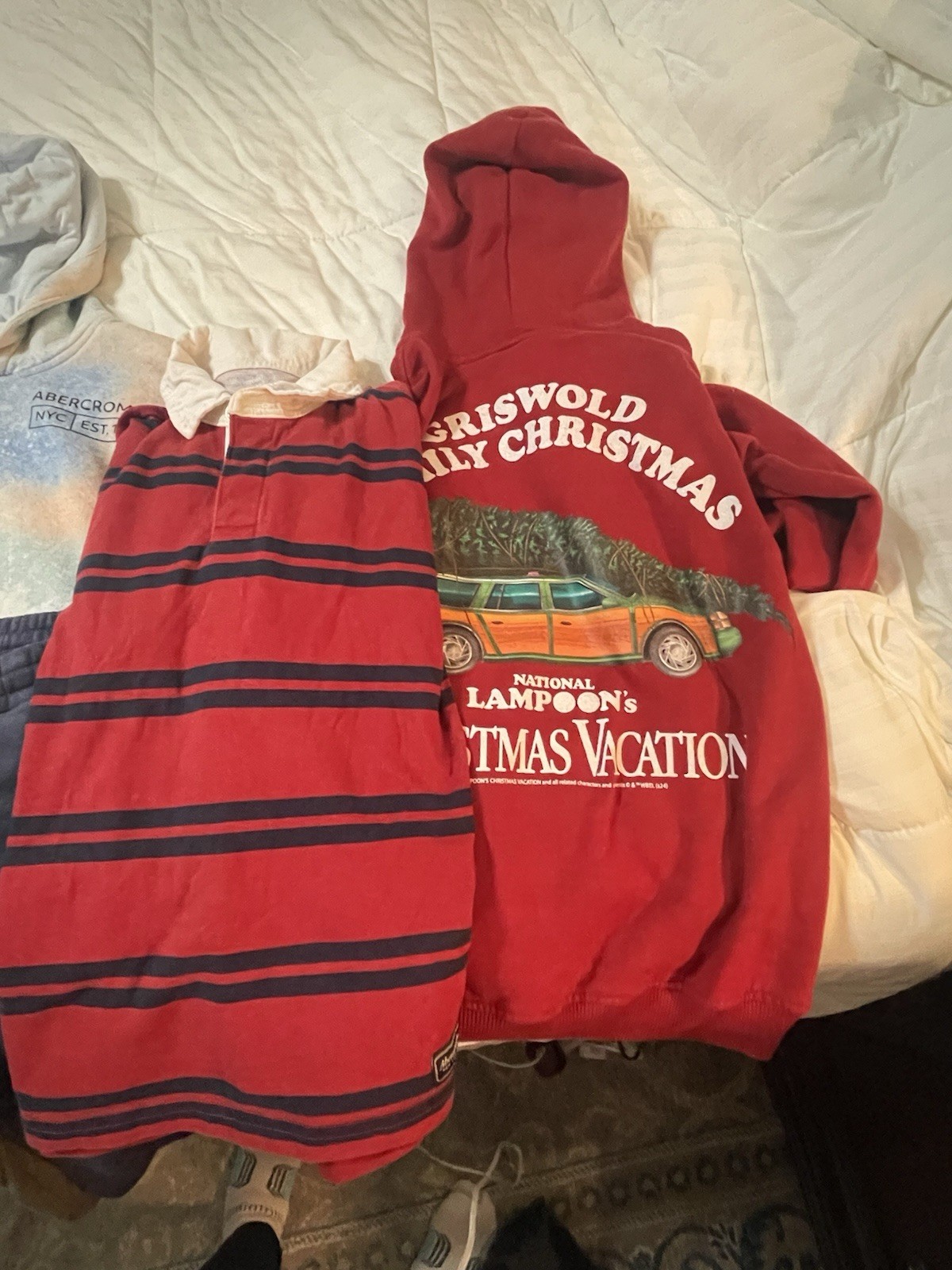 Boys Abercrombie Hoodie Christmas Vacation Graphic Rugby Polo 11-12 L