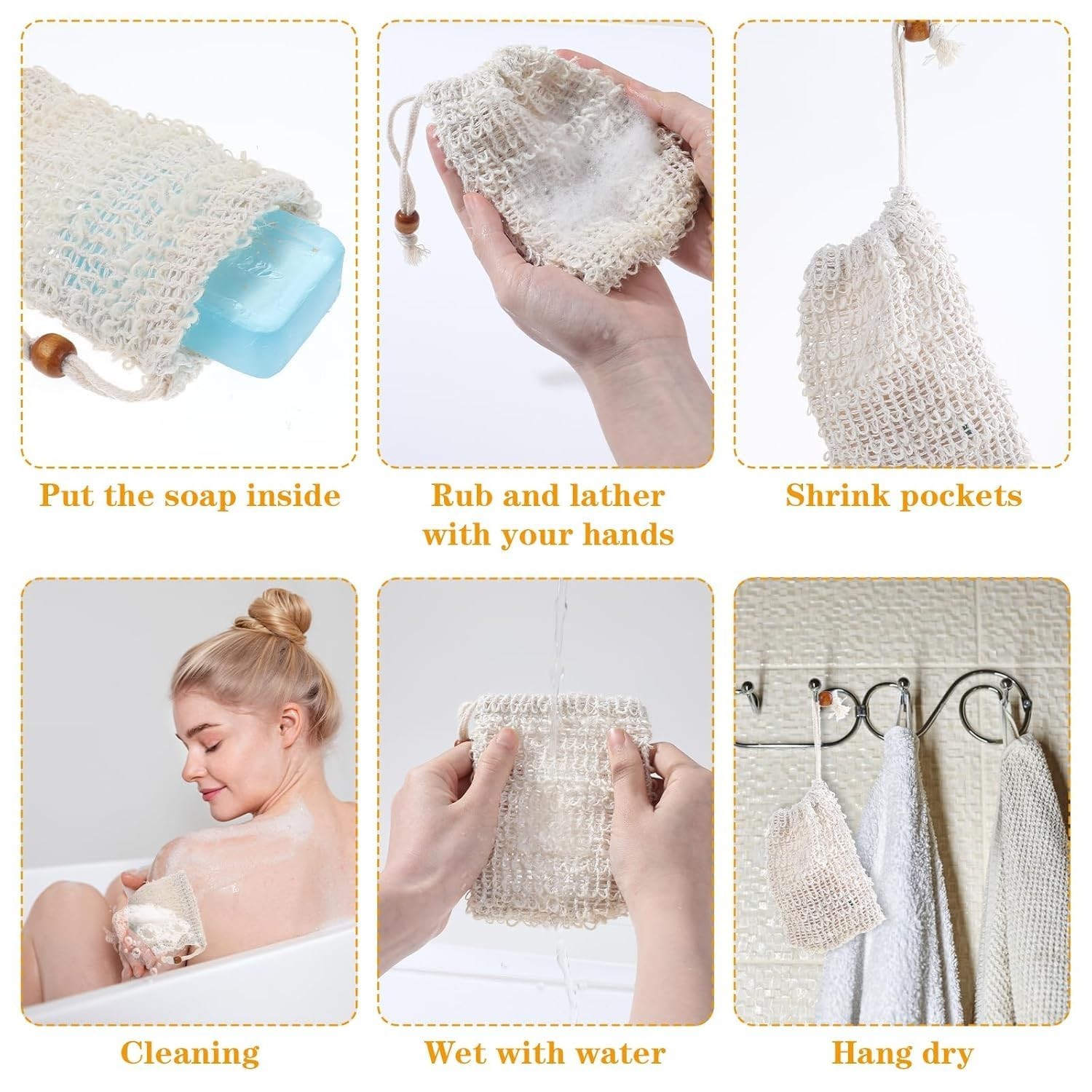 8 Pack Natural Sisal Soap Bag Soap Saver Net Mesh Exfoliator Foaming Pouch Soft