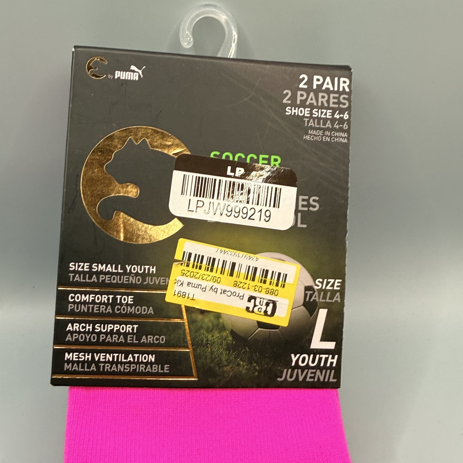 Puma Kids Youth Soccer Socks 2 Pair Black Pink Arch Support Mesh Ventilation