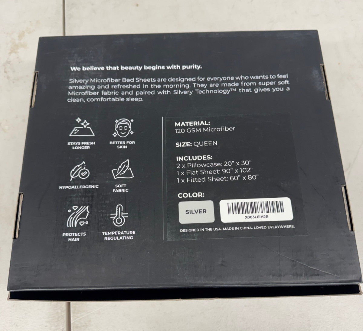 Silvery Silver Infused Cooling Bed Sheet Set Queen Gray Self Cleaning Technology