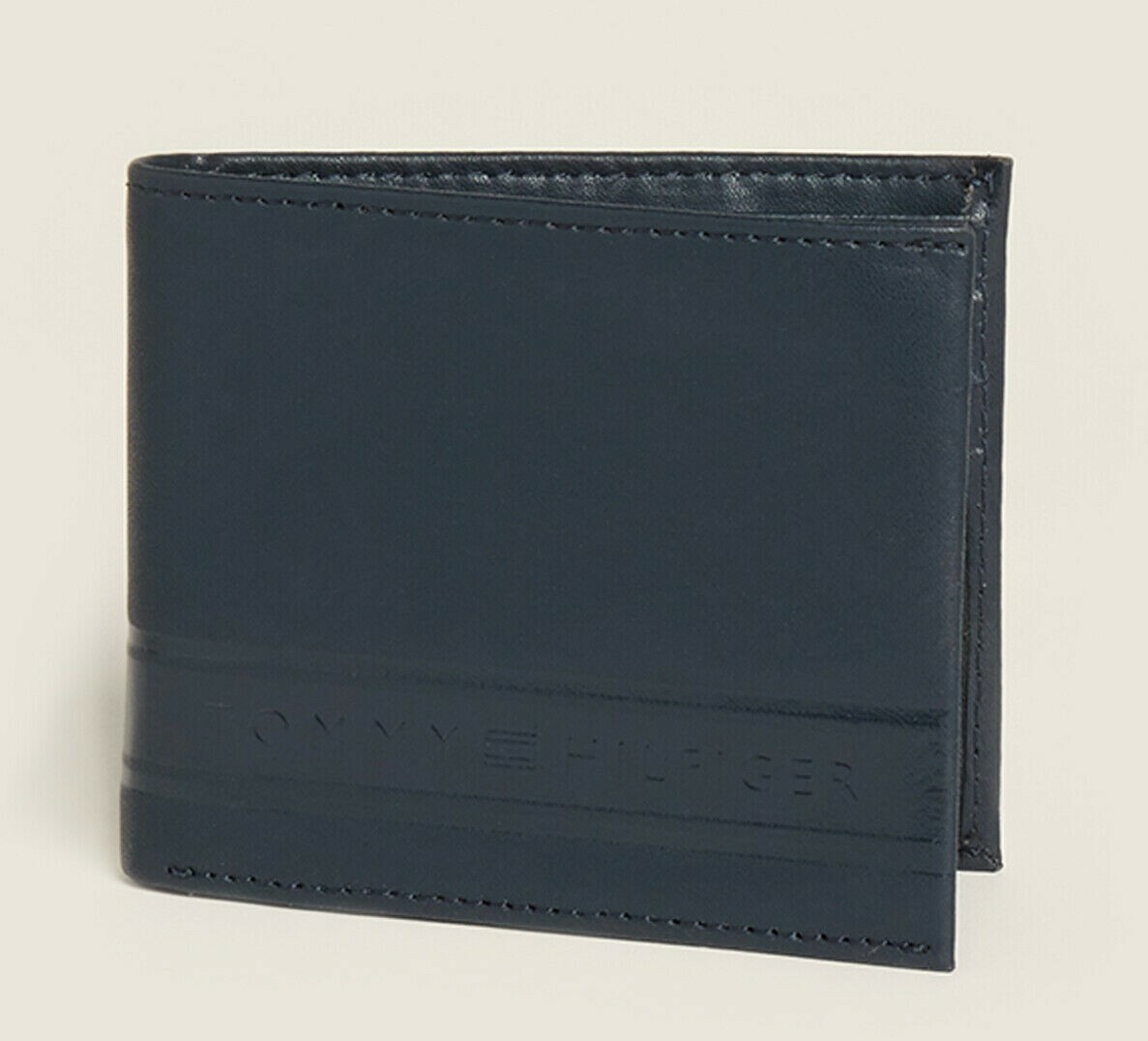 как выглядит NWT TOMMY HILFIGER AUTHENTIC RFID PASSCASE MENS NAVY BLUE LEATHER WALLET фото