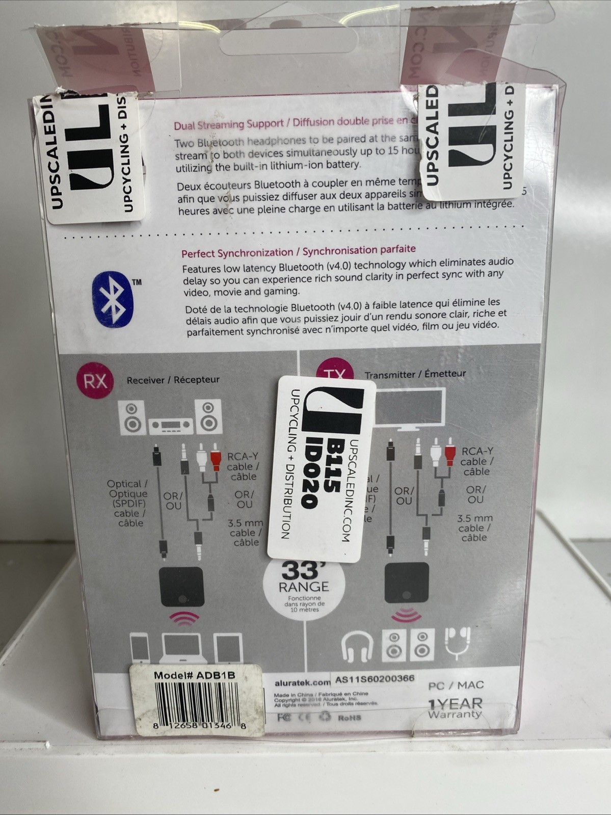 Aluratek ABC02F Bluetooth Audio Receiver and Transmitter 2-in-1 Wireless