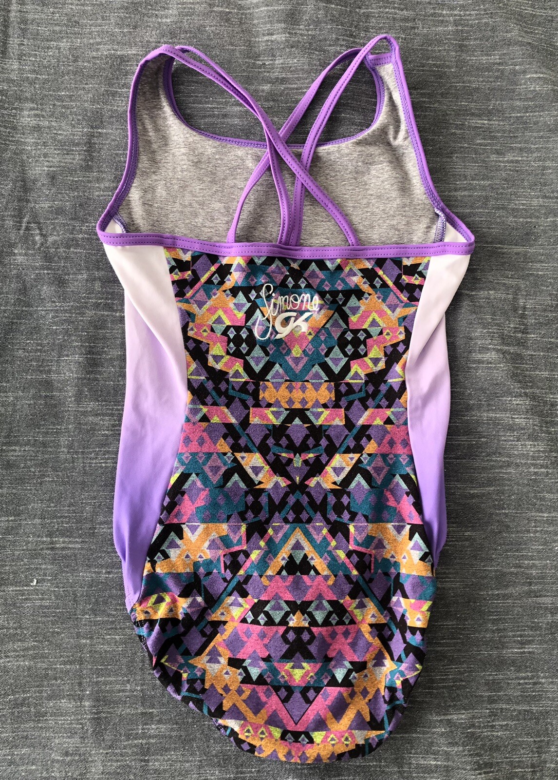 как выглядит GK Simone Biles Gymnastics Leotard Purple Kaleidoscope AS Adult Small фото