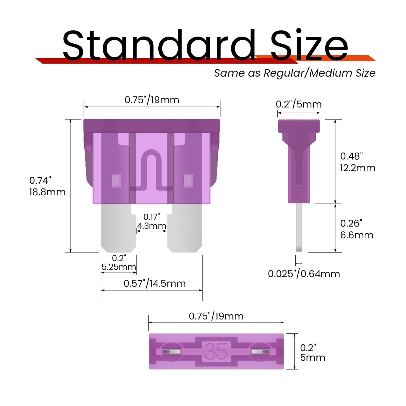 Formulation: 25 Pcs 35AMP Standard Car Fuses