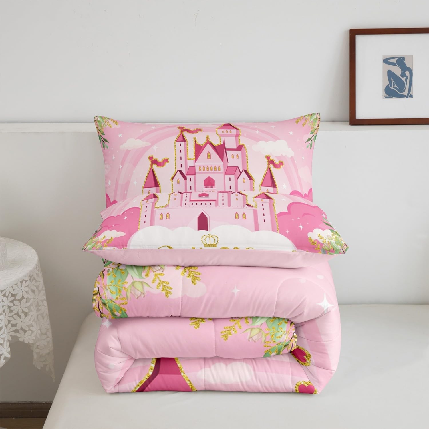 Kids Princess Comforter Set Bed in a Bag Toddler Size 2 Piece Soft Cute Pink ...