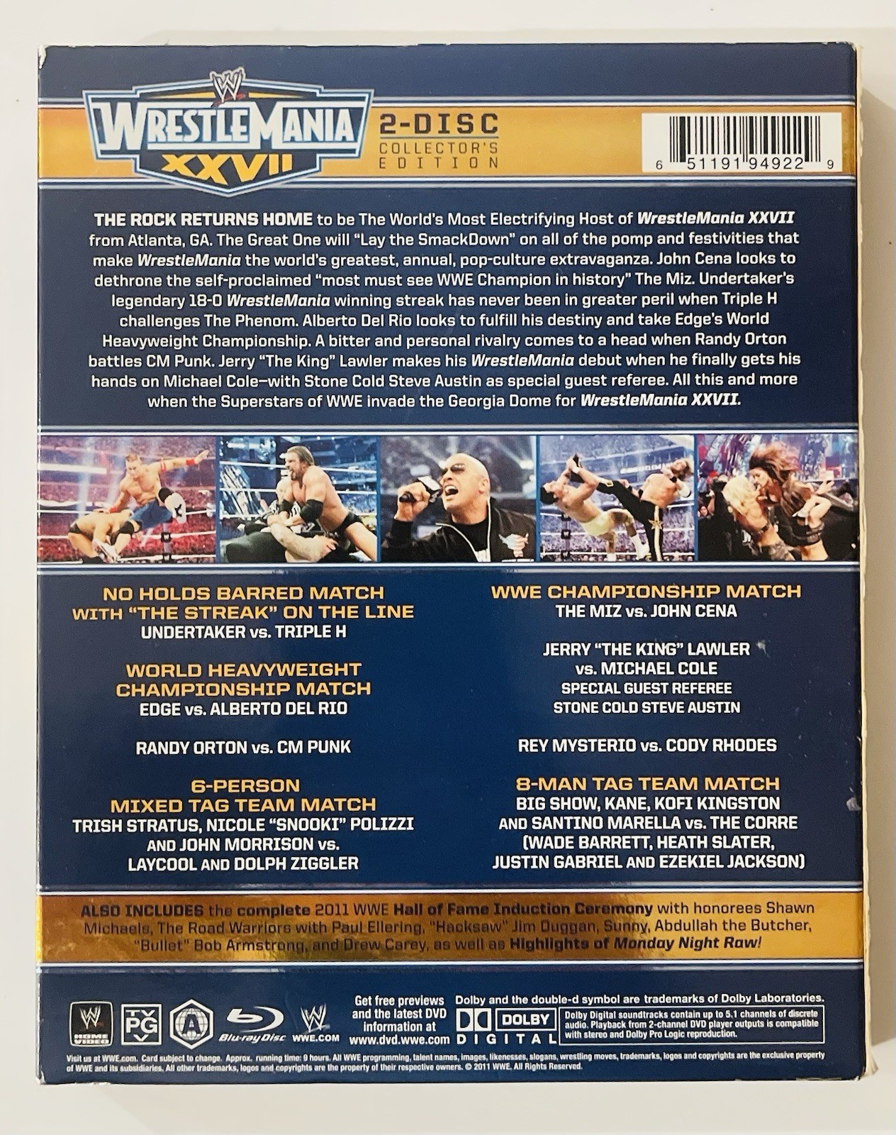 WWE Wrestlemania XXVII Blu-ray 2-Disc Set Undertaker Triple H John Cena Austin