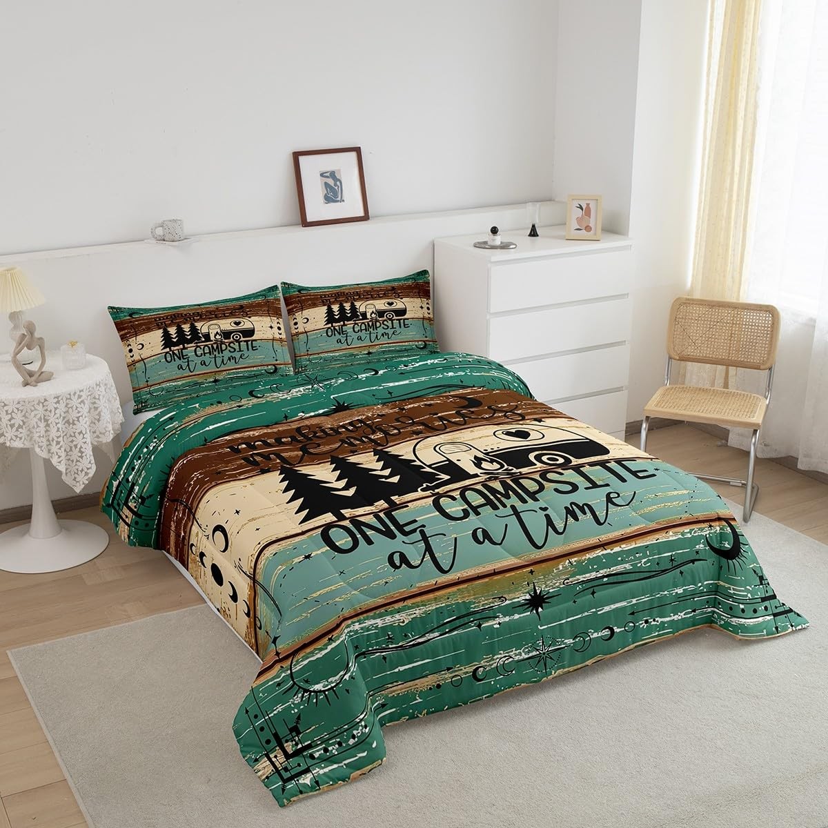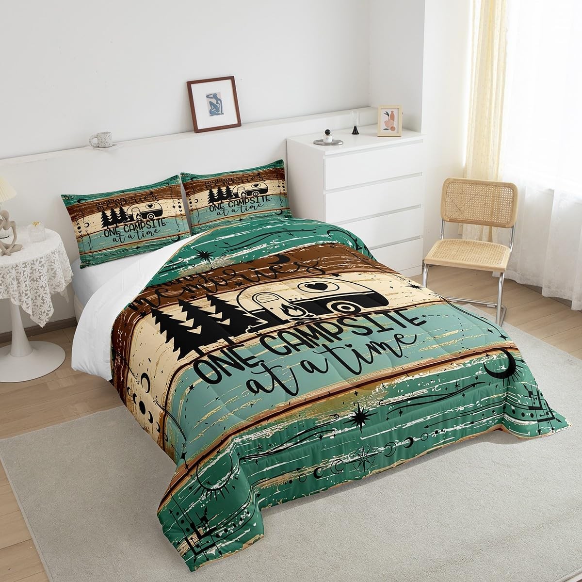 как выглядит Camper Decor Bedding Set 2 Pieces, Happy Camping Comforter Set for Boys Teens... фото