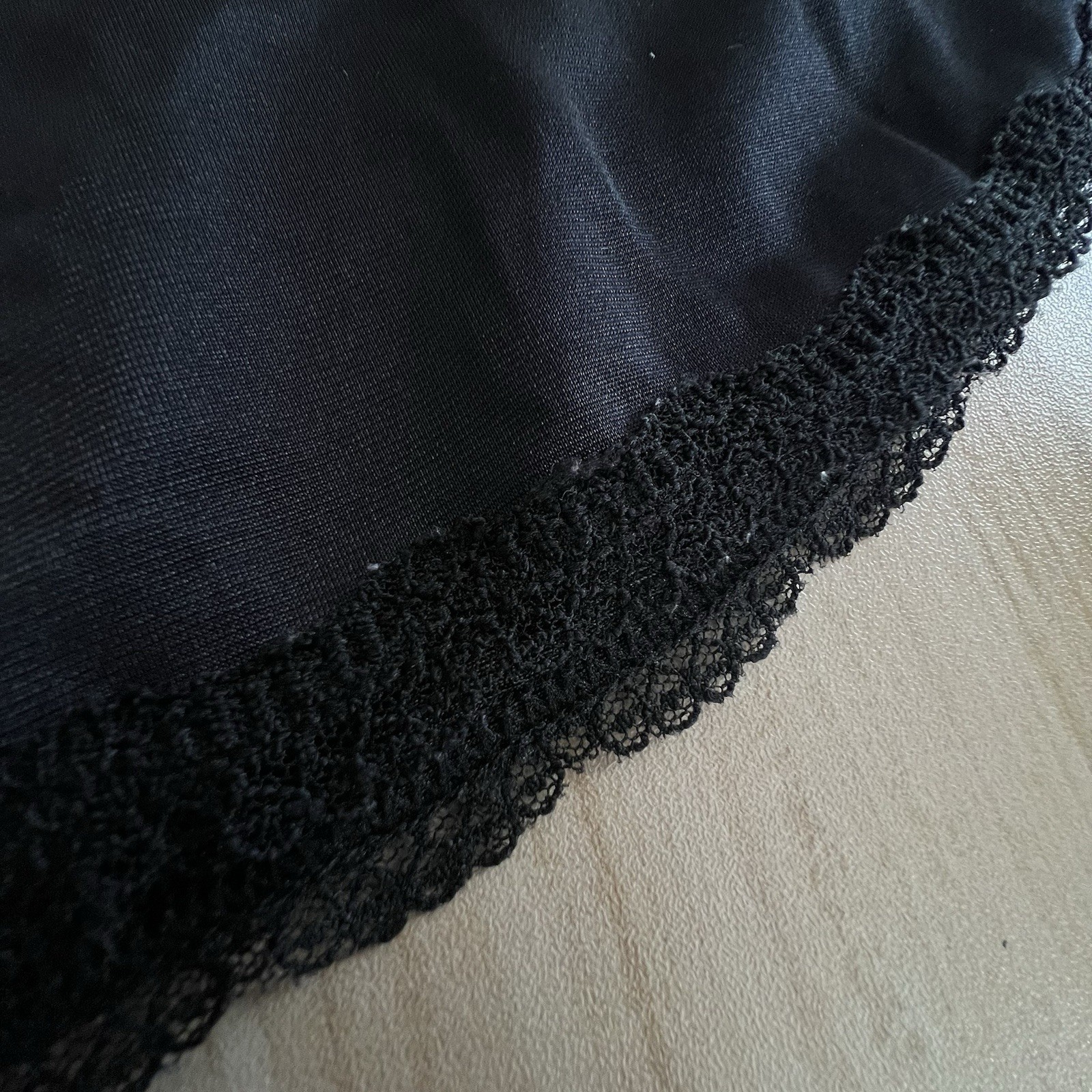как выглядит Shadowline Black Nylon Slip Skirt Plus 1X 34" Double High Slit Lace Vintage USA фото