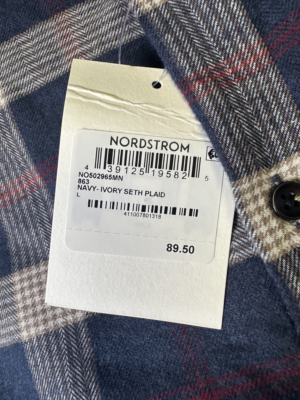 NWT Nordstrom Men s Trim Fit Plaid Button Down Shirt 100 Cotton Size L 212