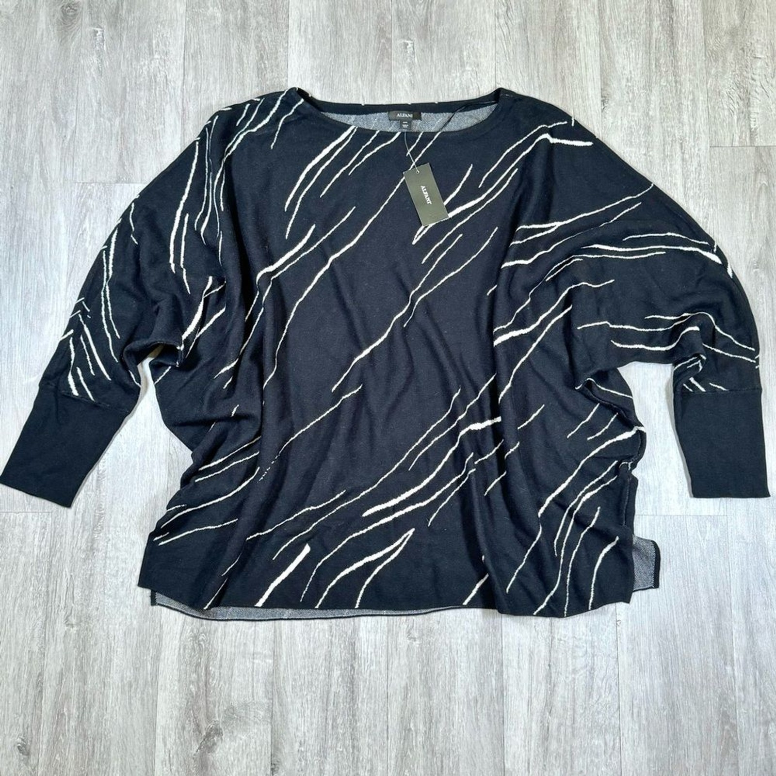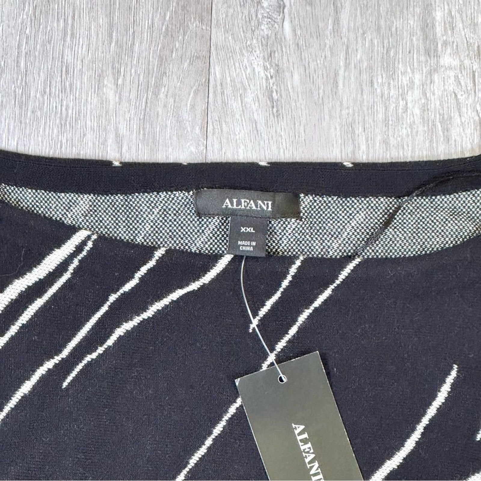 Alfani Womens XXL NWT Black Marble Print Dolman 3/4 Sleeve Boat Neck Sweater New