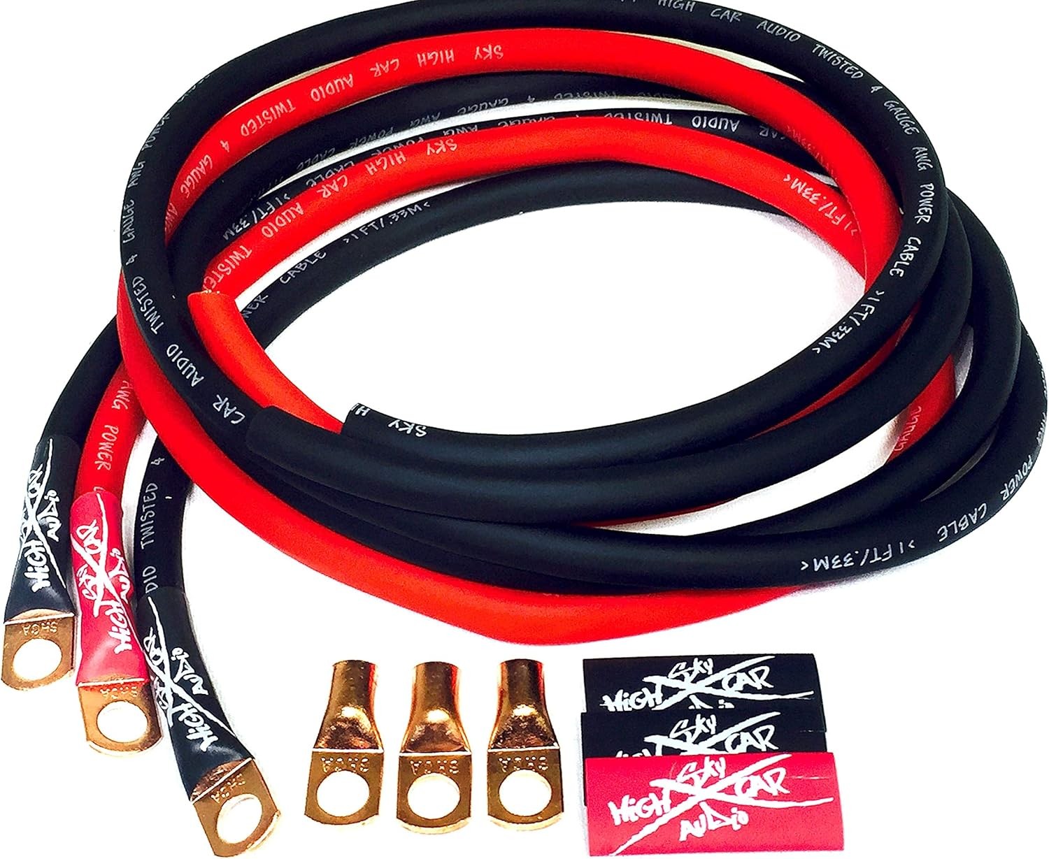 Sky High Oversized 4 Gauge AWG Big 3 Upgrade RED/Black Electrical Red, Black
