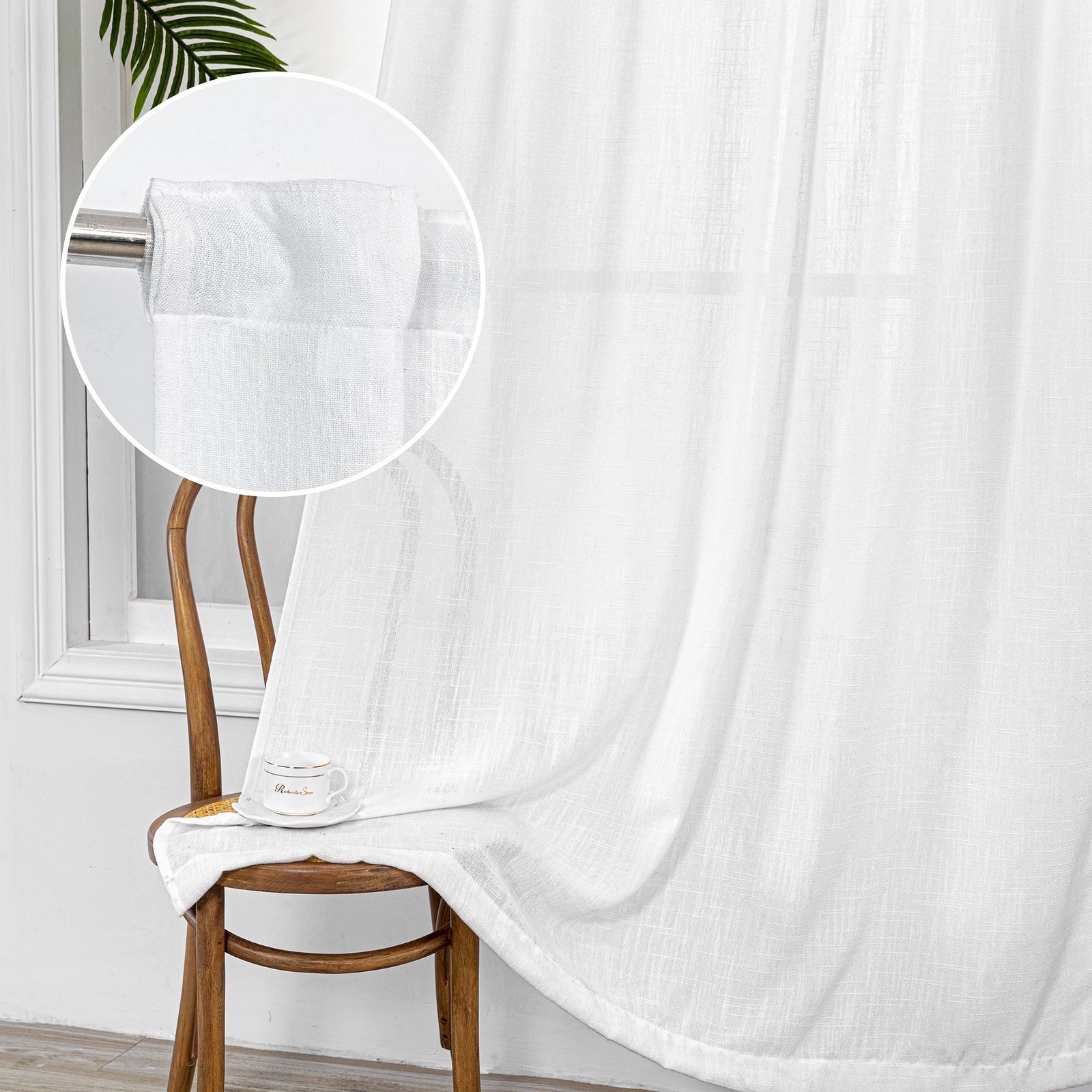 как выглядит White Curtains 84 Inch Length 2 Panels Set, Semi Sheer Cotton Blend Soft Touc... фото