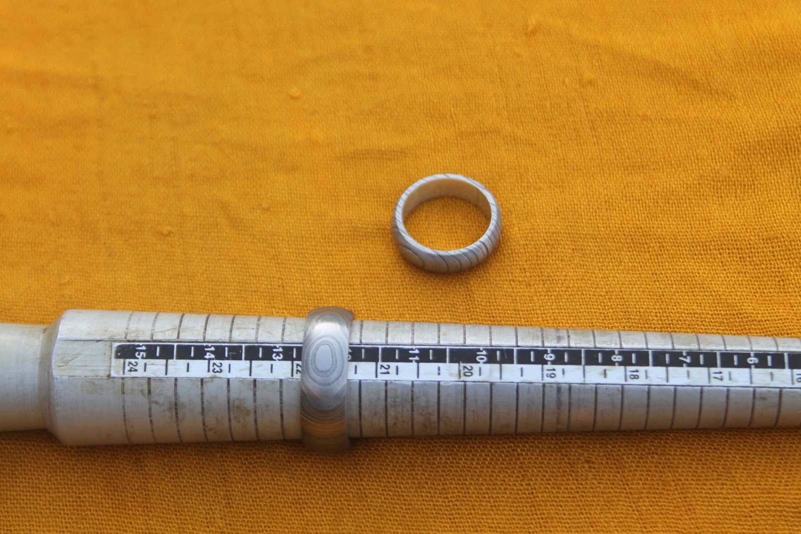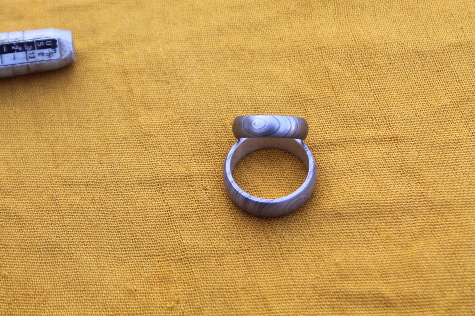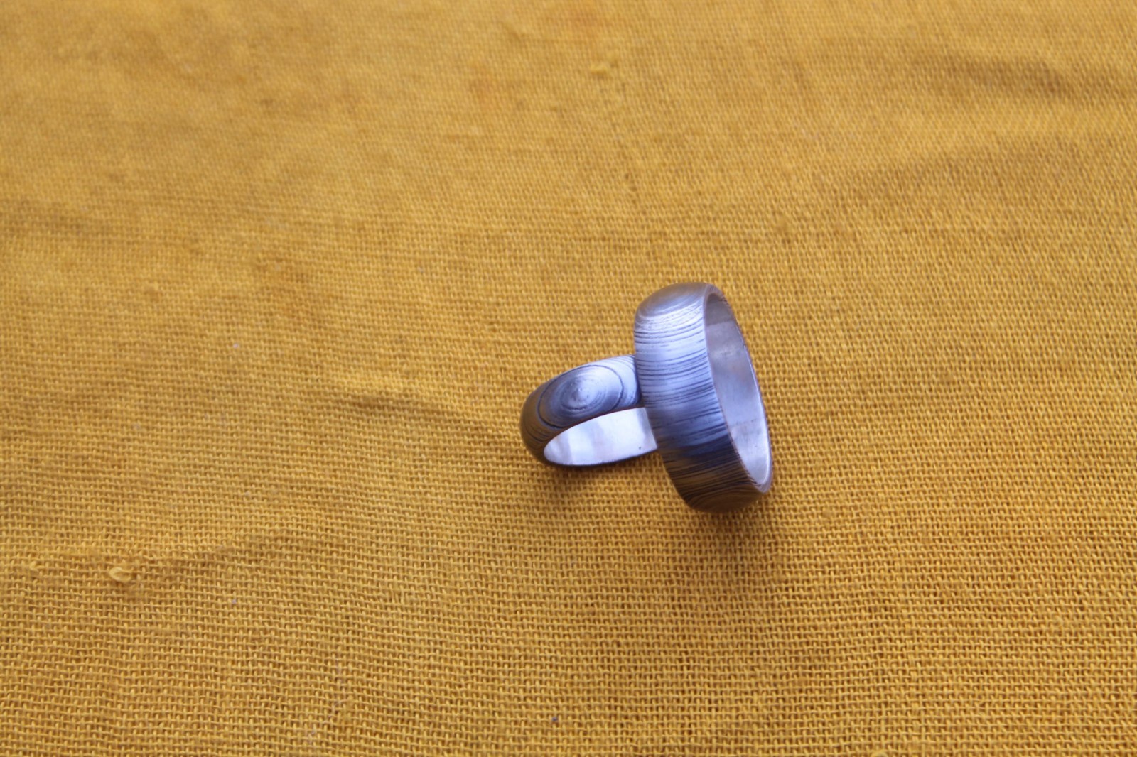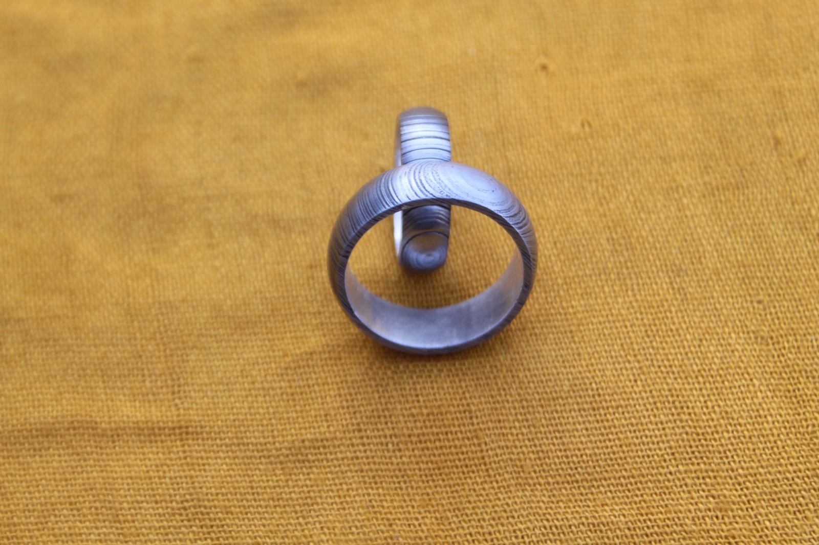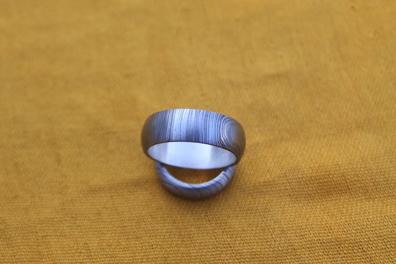 как выглядит Damascus steel finger ring silver liner inside valentines couple gift 12.5/7 siz фото