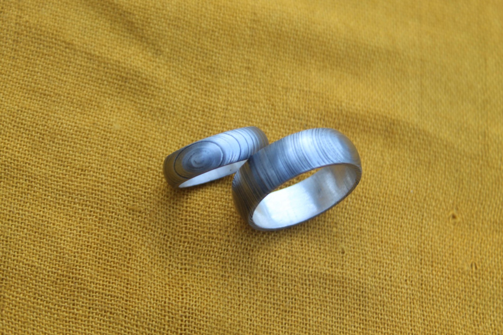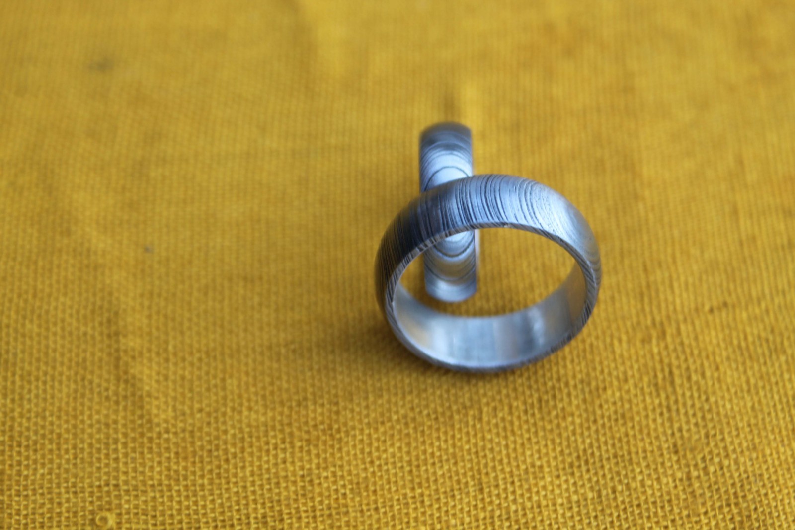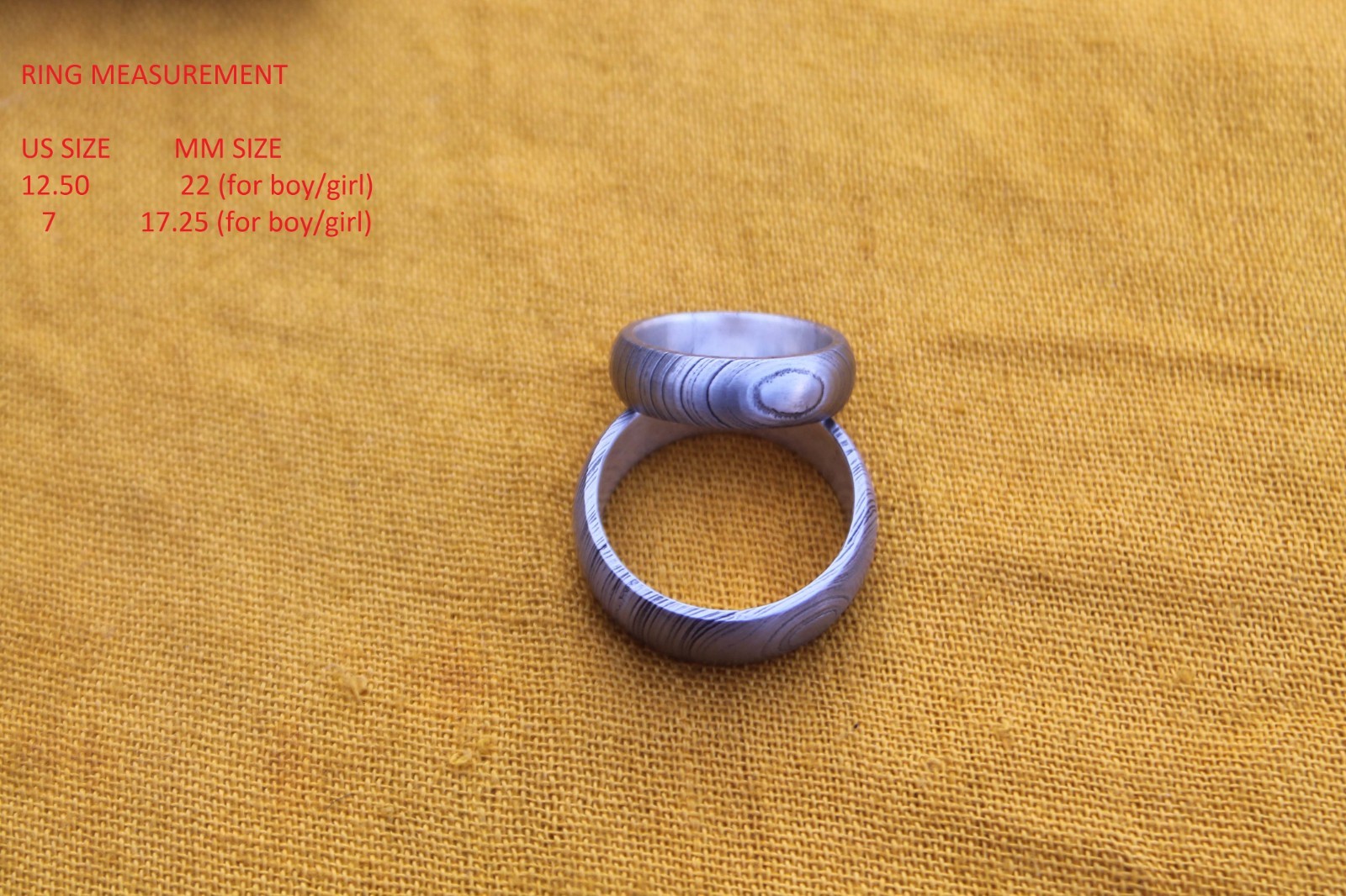Damascus steel finger ring silver liner inside valentines couple gift 12.5/7 siz