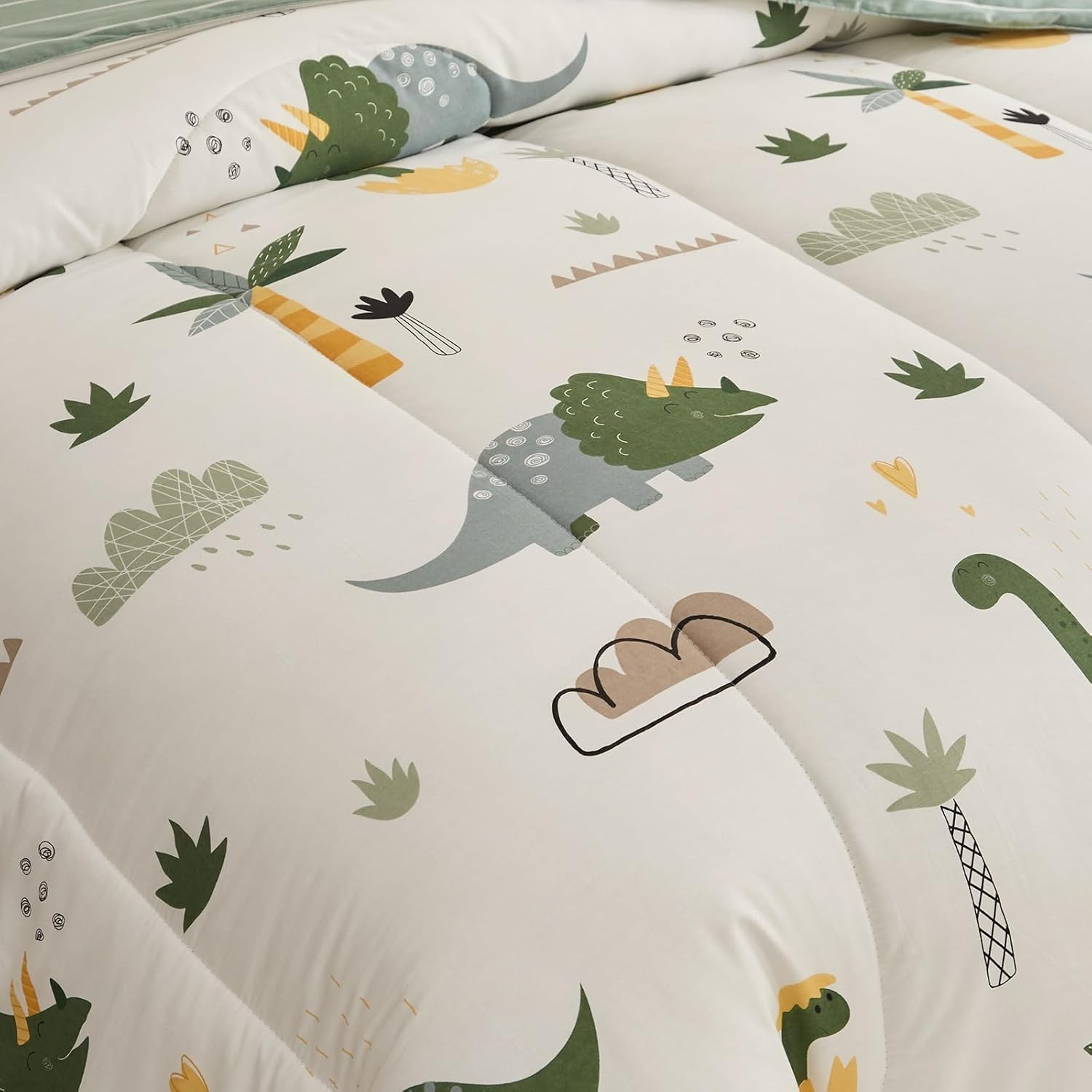 Green Dinosaur Print Toddler Comforter Sheet Set