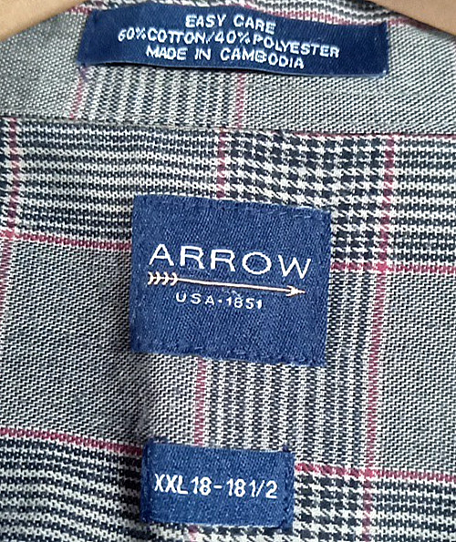 как выглядит Pair Arrow Dress/Casual Shirts Mens 2XL 18-18.5 Bugundy Plaid Gray/Black/Tan фото